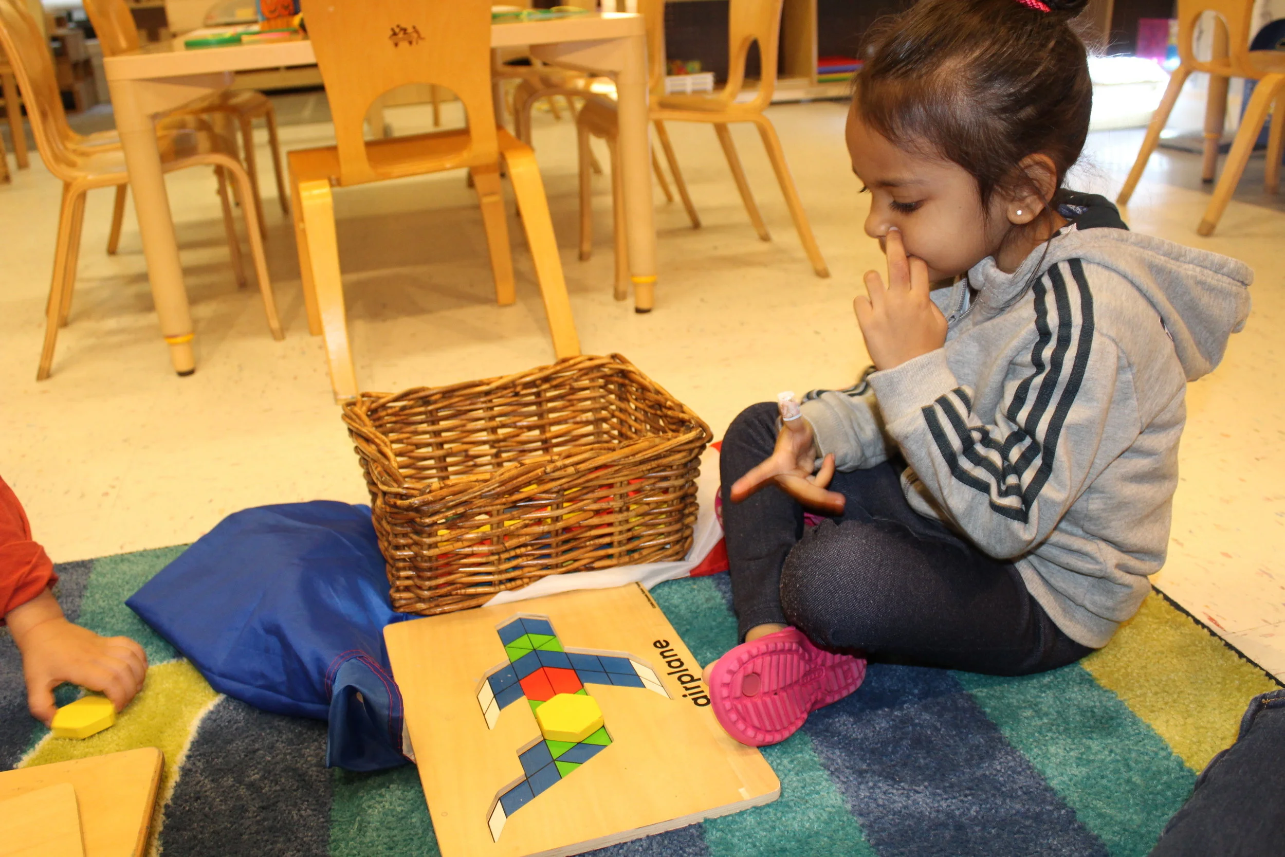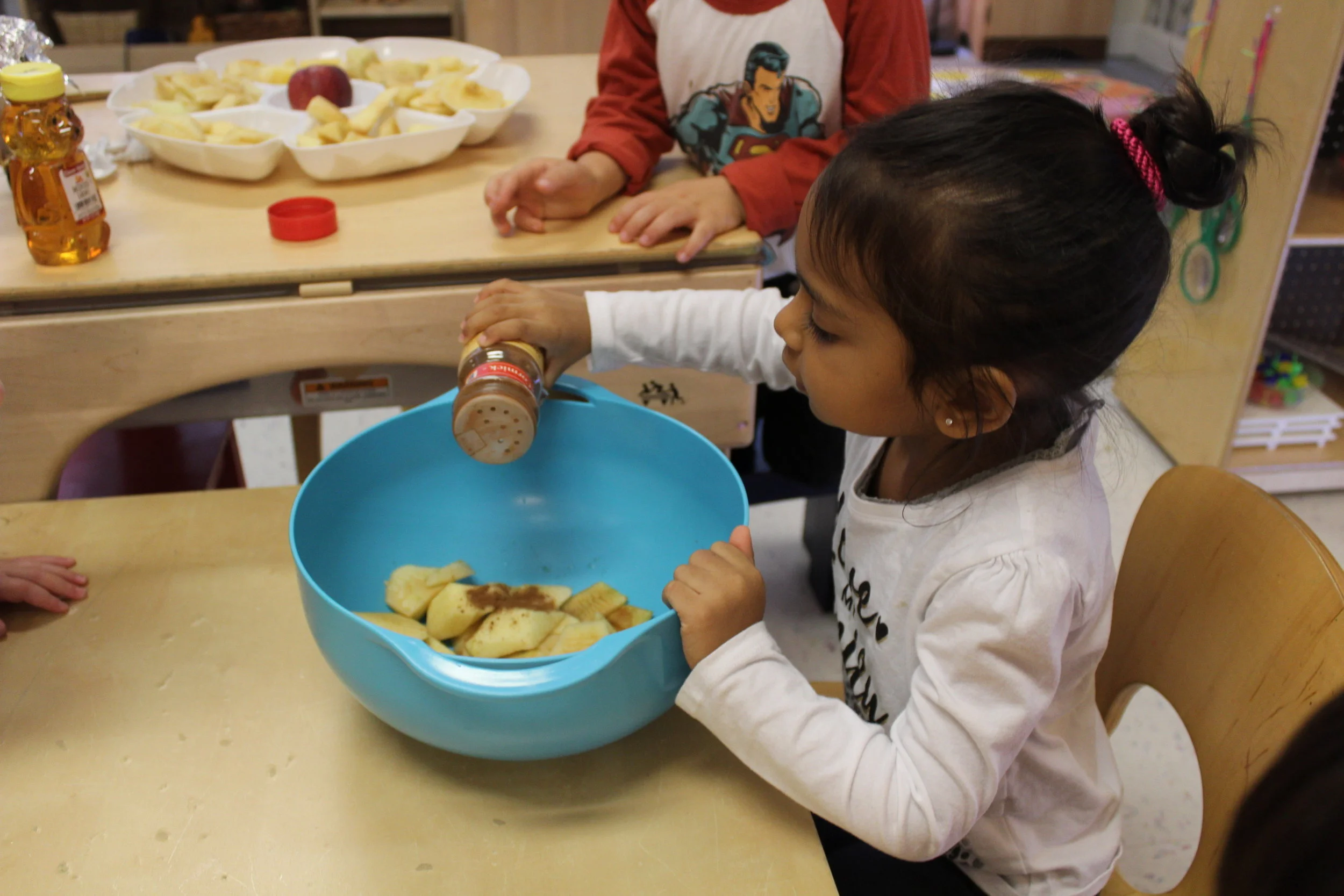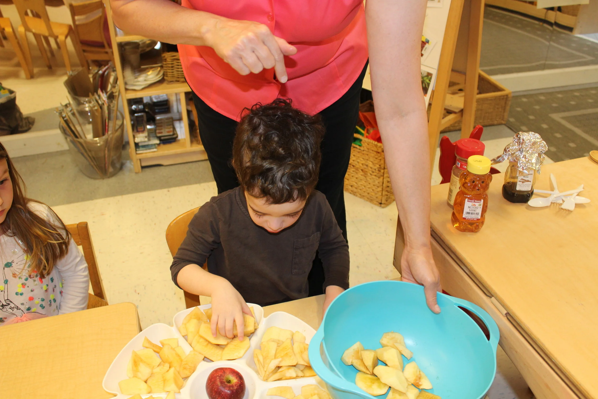 In addition to the study of children’s identity, here and there we could hear the children talking about themselves, their names, and their families. Today, the children had a conversation among each other about who is a boy and who is a girl in our room. The children incorporated math into the conversation as Vivi and Graydon went around the classroom to count boys and girls.