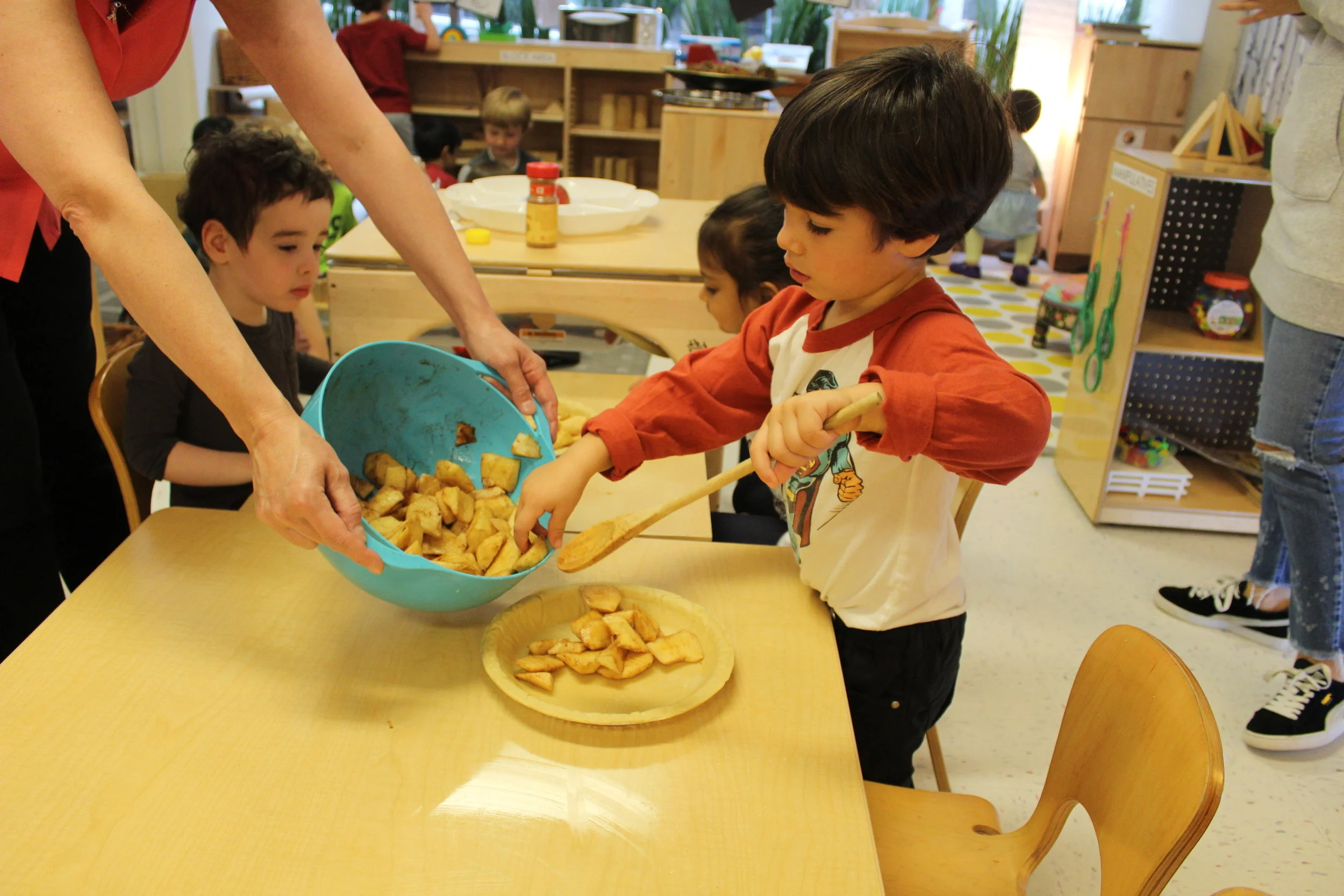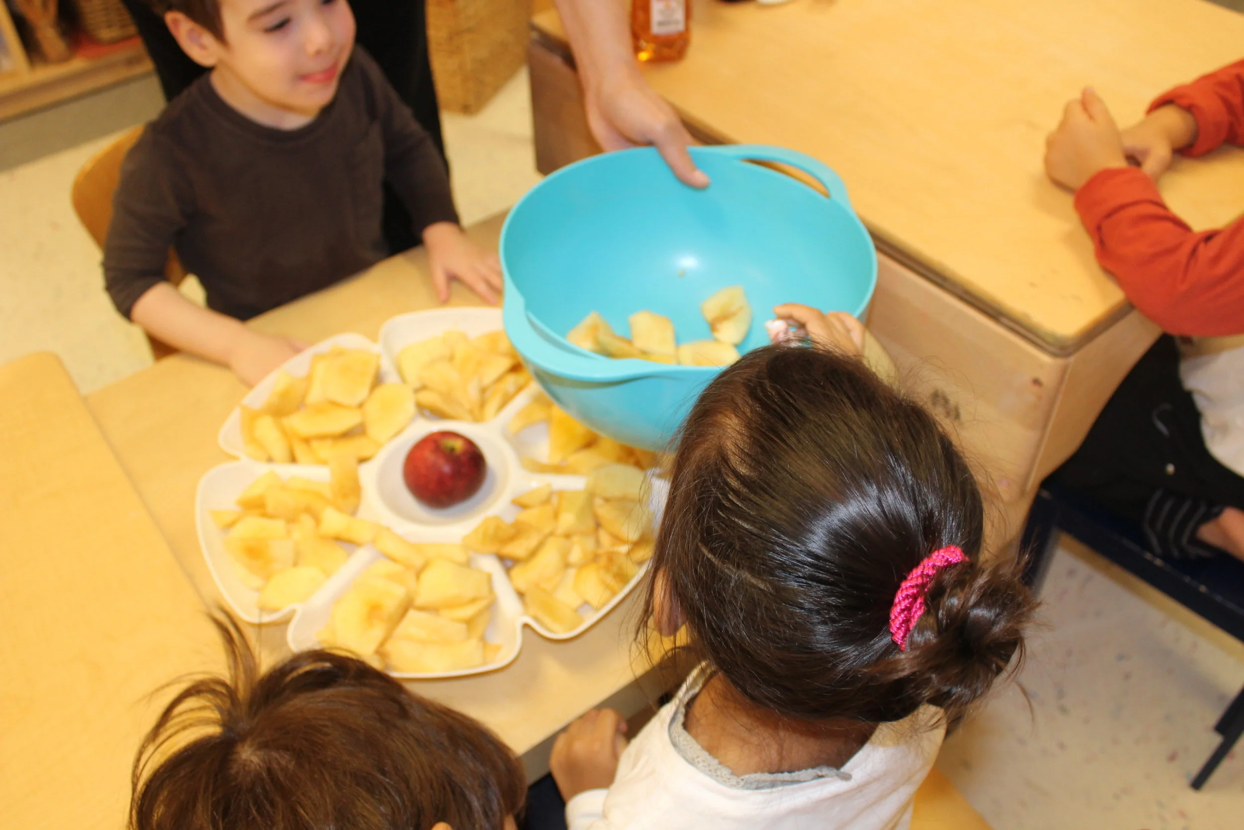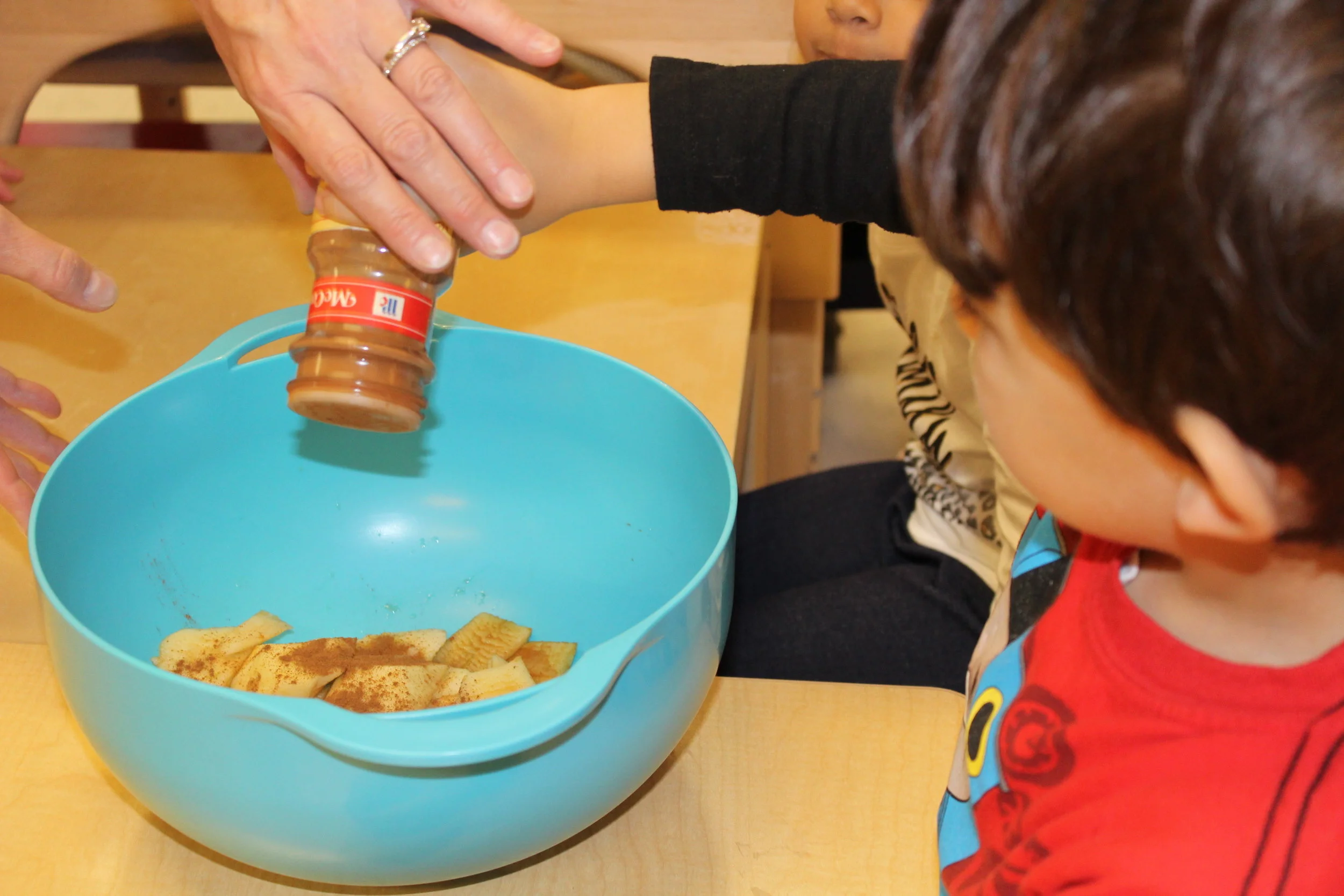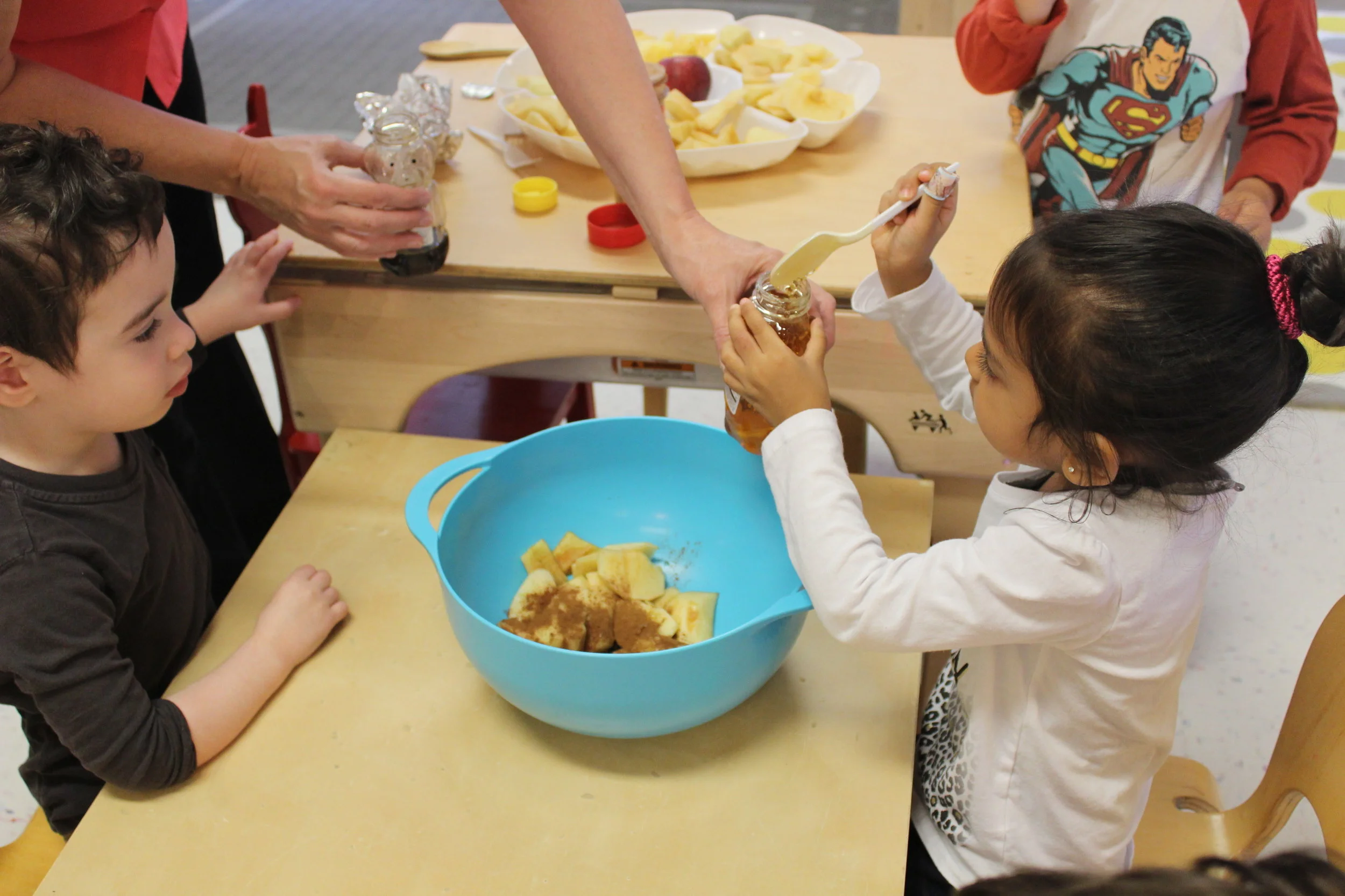 In addition to the study of children’s identity, here and there we could hear the children talking about themselves, their names, and their families. Today, the children had a conversation among each other about who is a boy and who is a girl in our room. The children incorporated math into the conversation as Vivi and Graydon went around the classroom to count boys and girls.