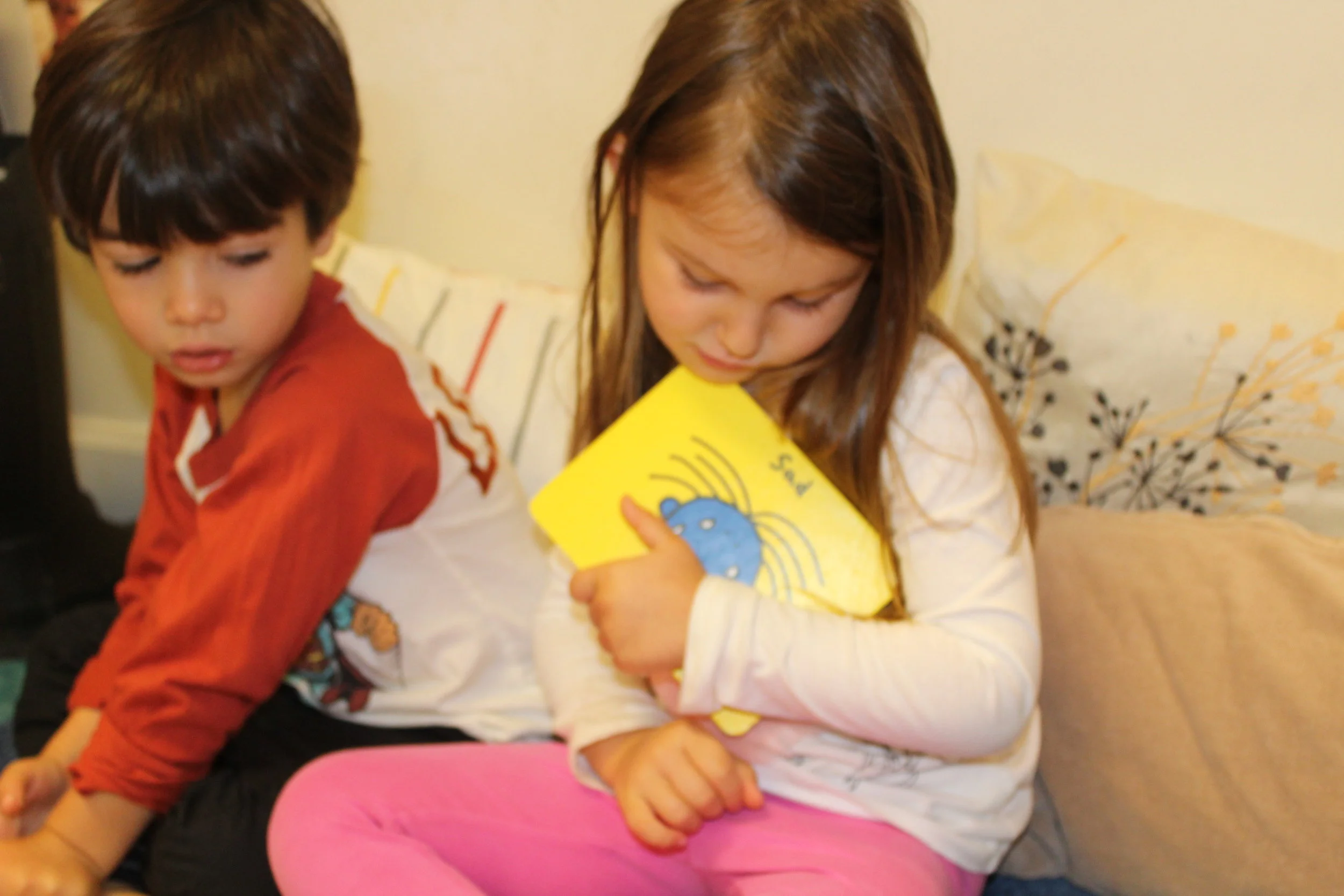 Sam: “ I am sad because I miss my mommy and daddy. But I am happy, my mommy is picking me up.”