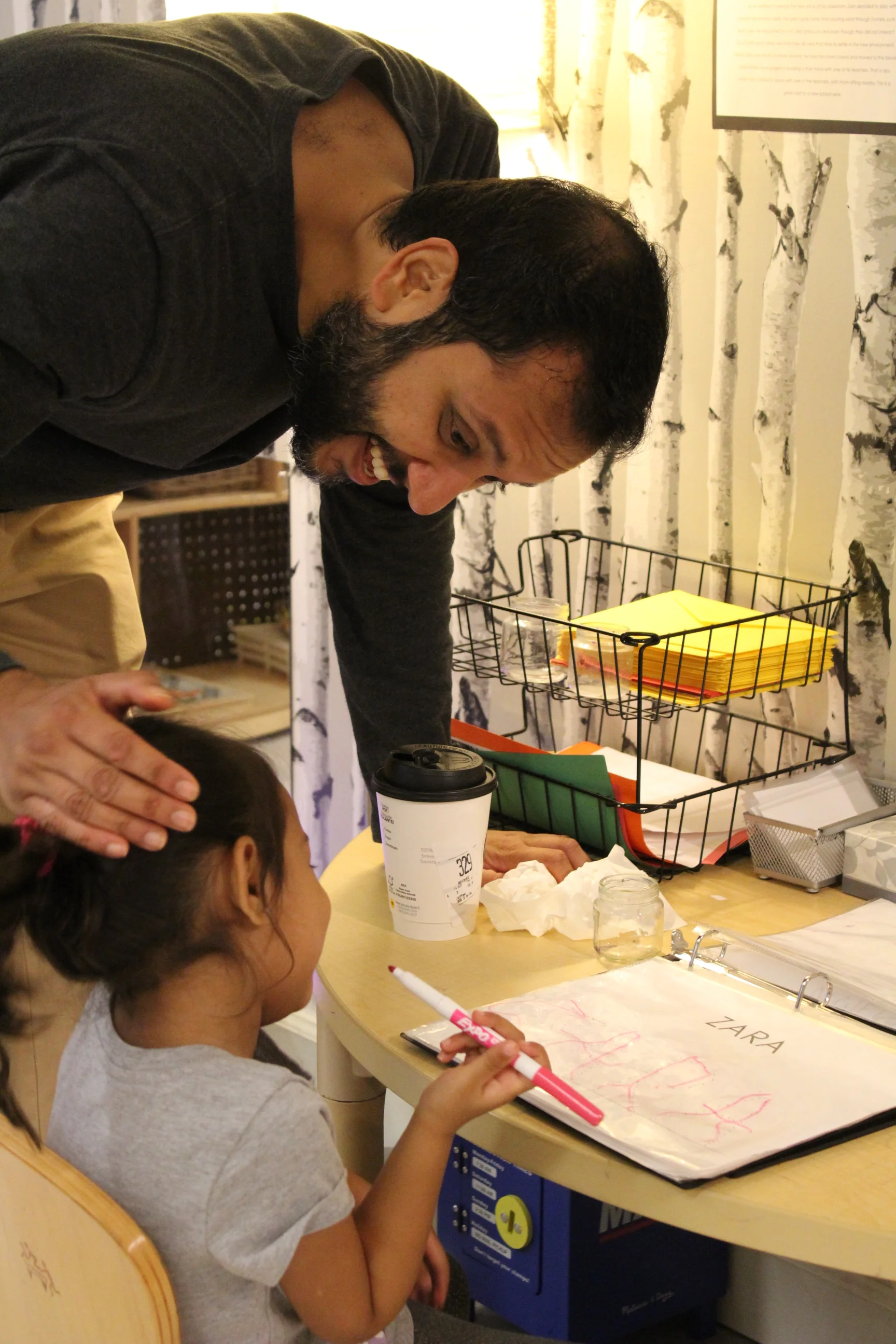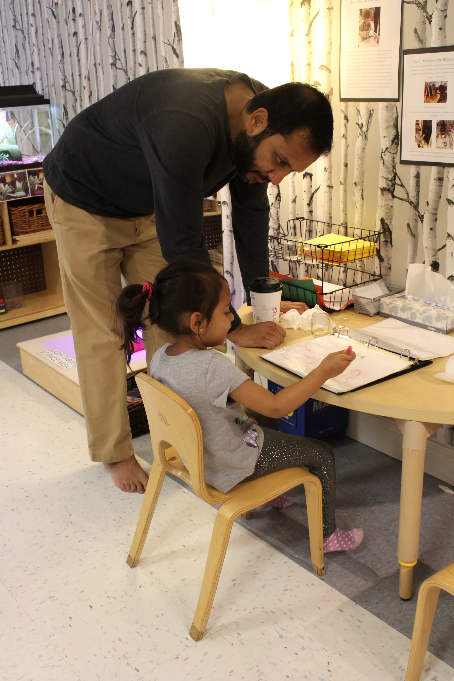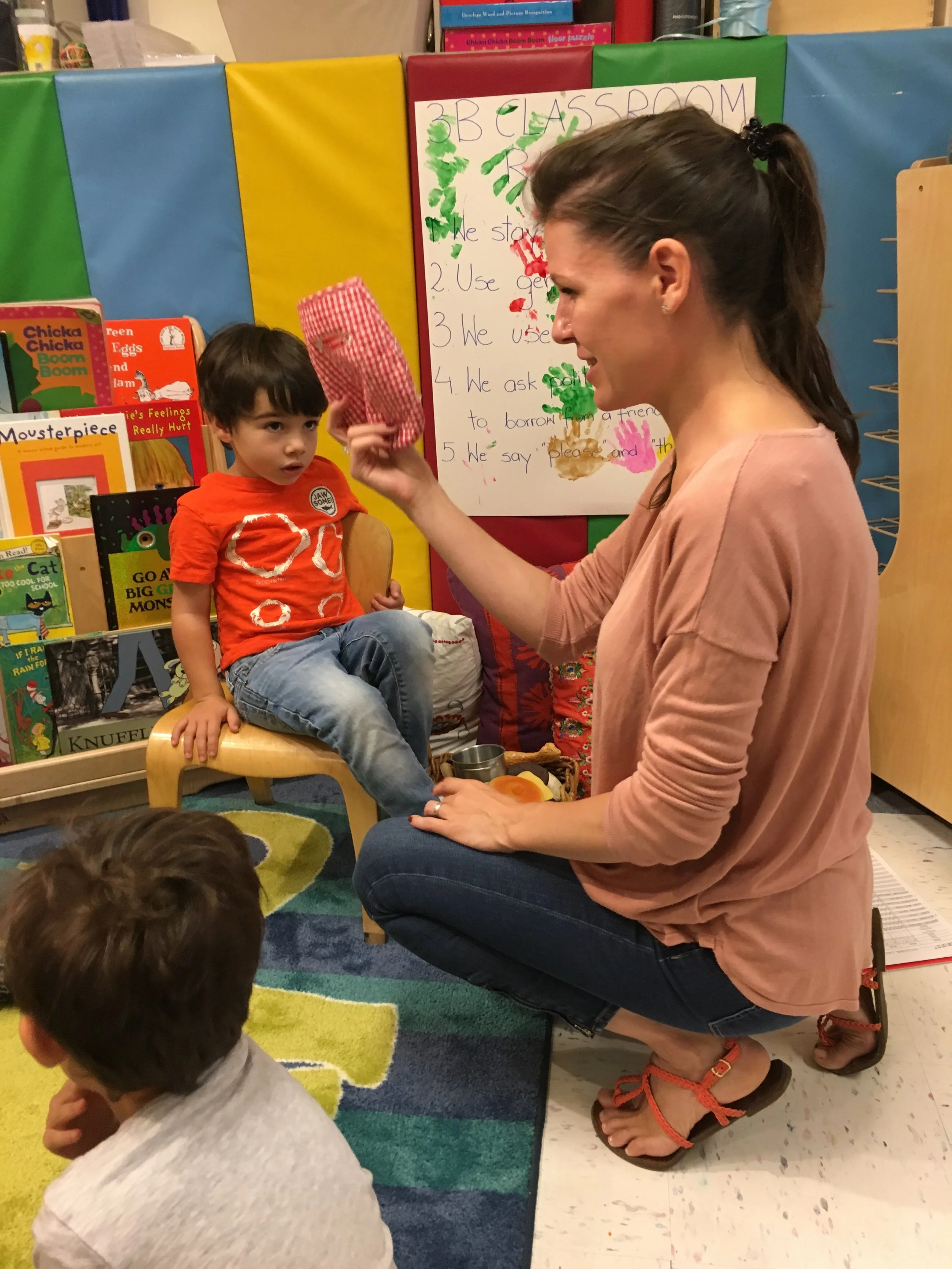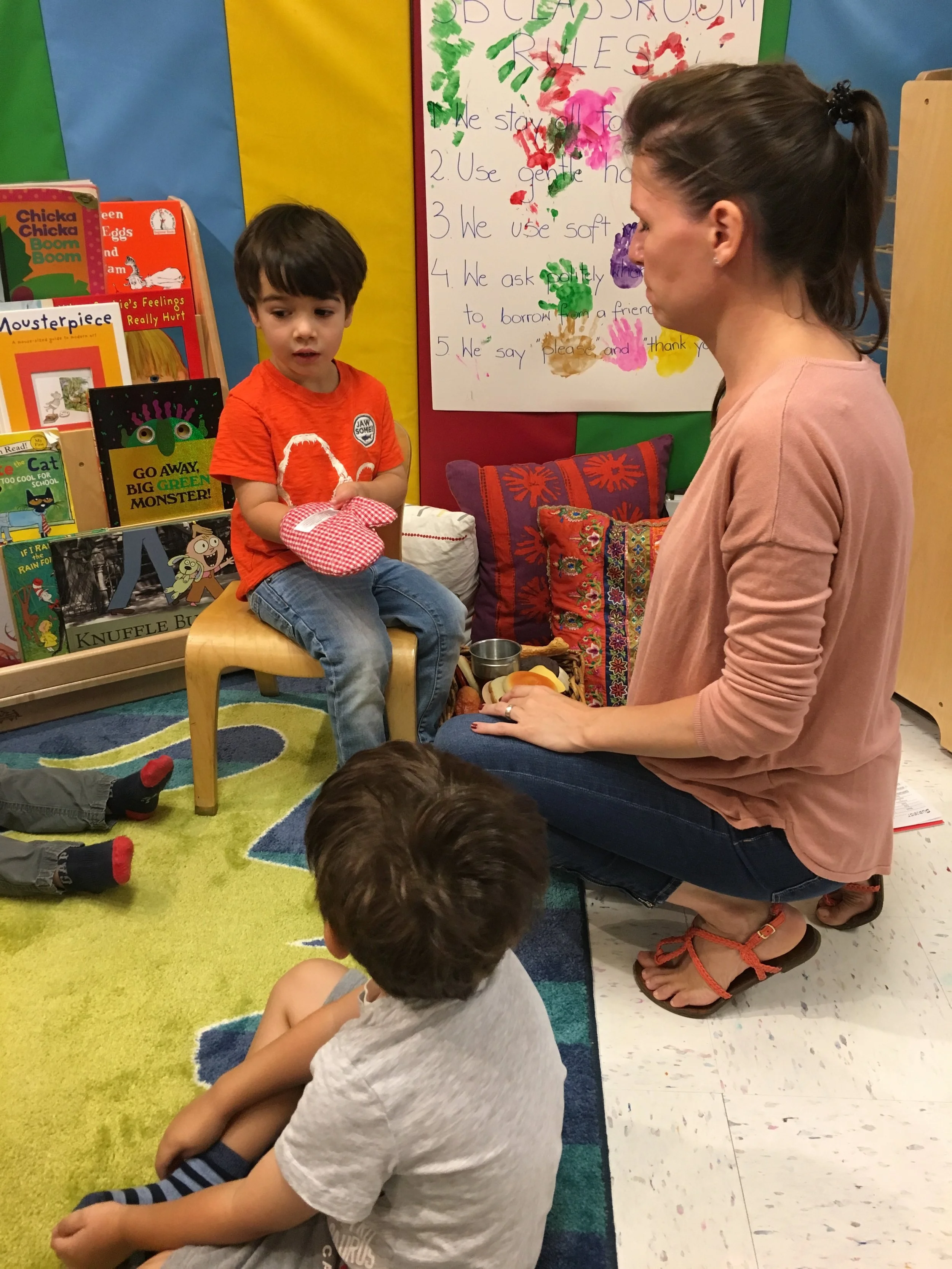 Teacher: “What was the game you were playing with this glove in the block area with Adam?”