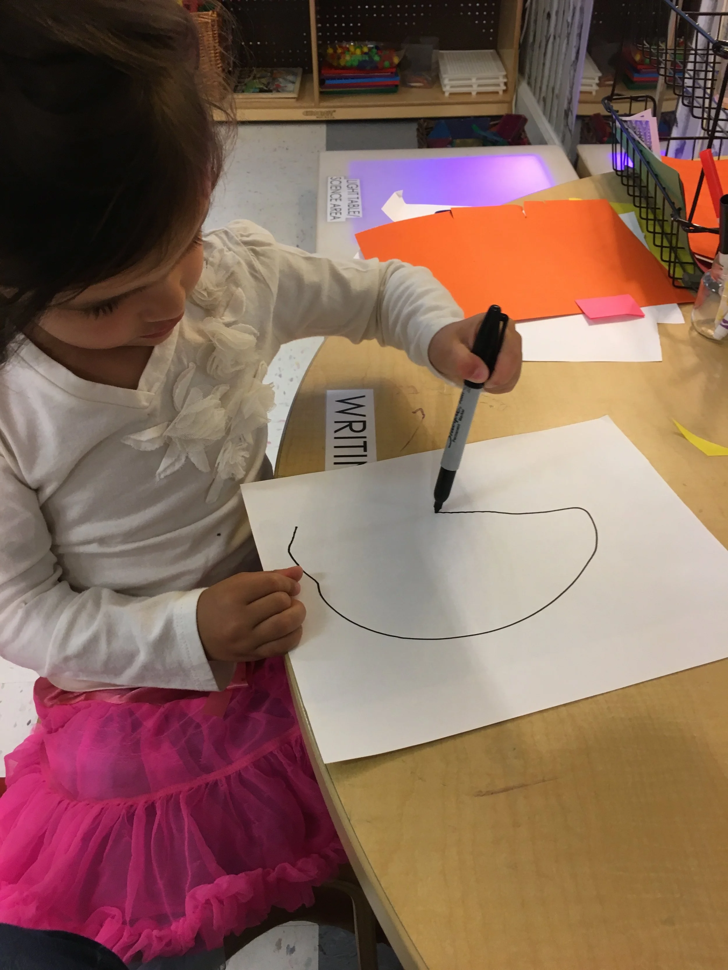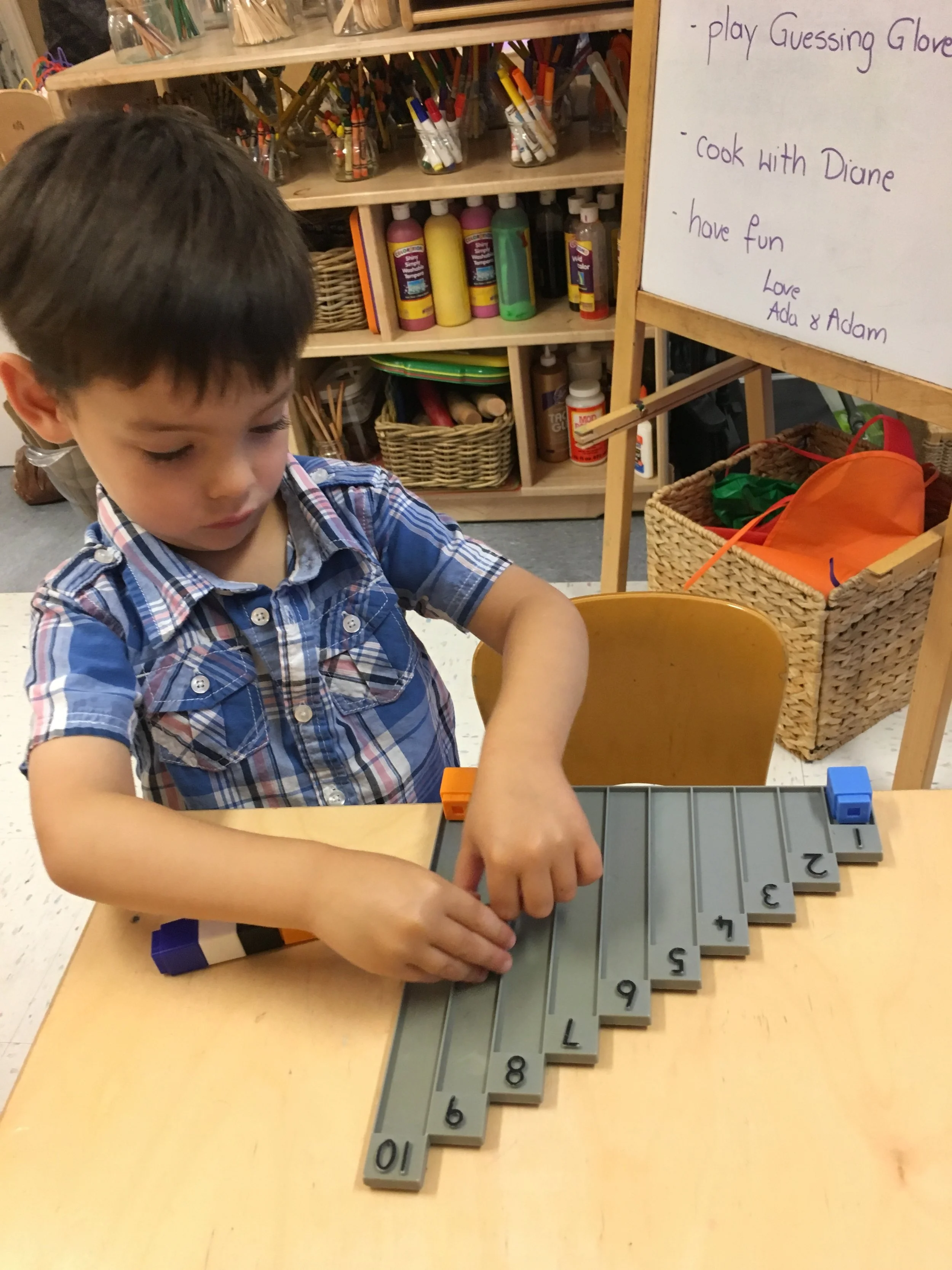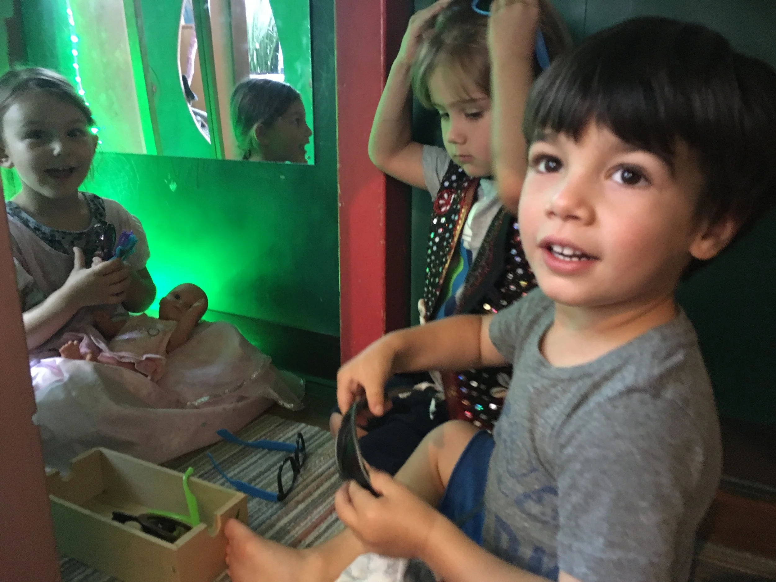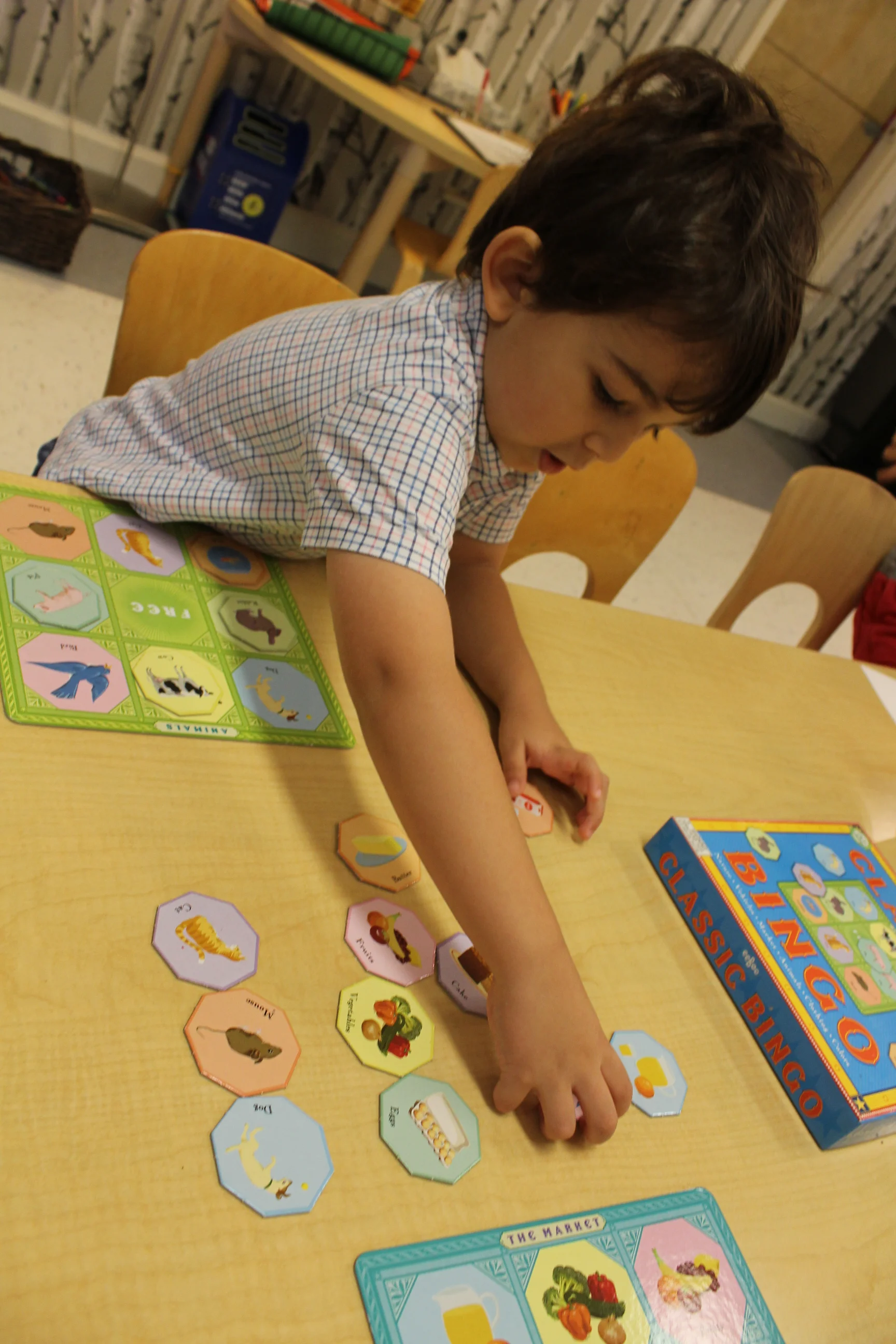 Recently, during open choice time Graydon invented a game. It all started with him hiding kitchen food under his t-shirt and asking one of his teachers to guess what he hid. Soon his friends started to join the game. Graydon would help them guess by providing hints. It seemed that the children were really involved and engaged in this game taking turns and establishing rules. As soon as Kian got involved he modified this game by bringing an oven mitt and placing an item inside of it (instead of under the t-shirt). Instantly he came up with a name for this game, “Guessing Glove.” It seemed that the inventor (Graydon) and participants agreed to that change as they started to use the glove.