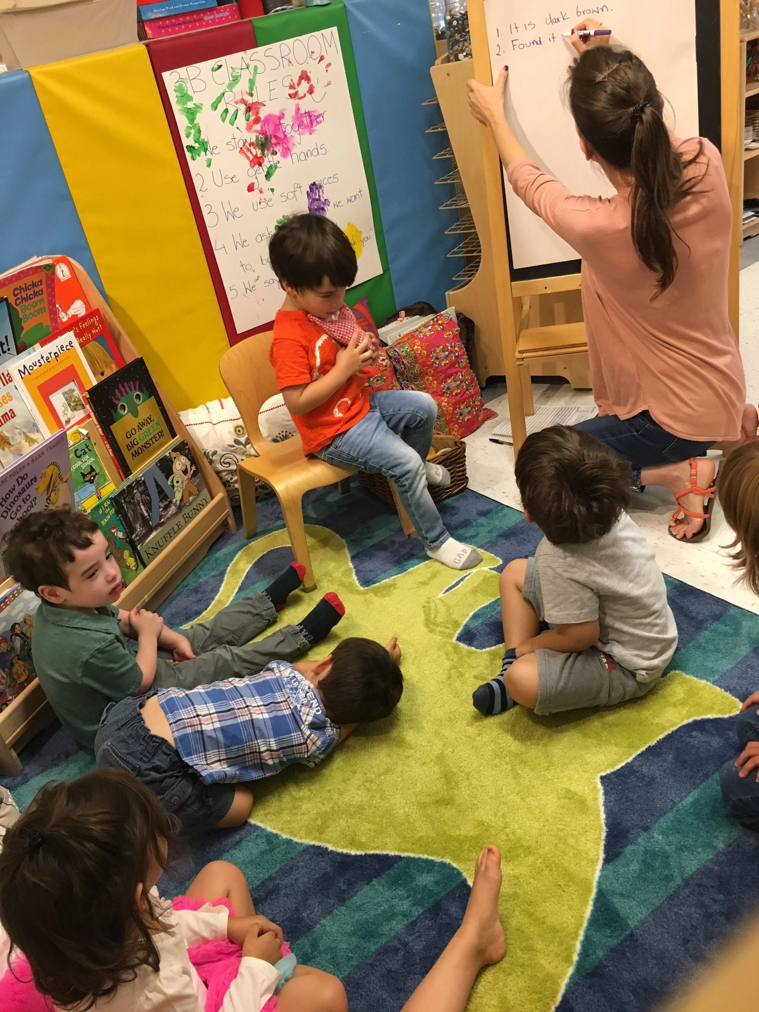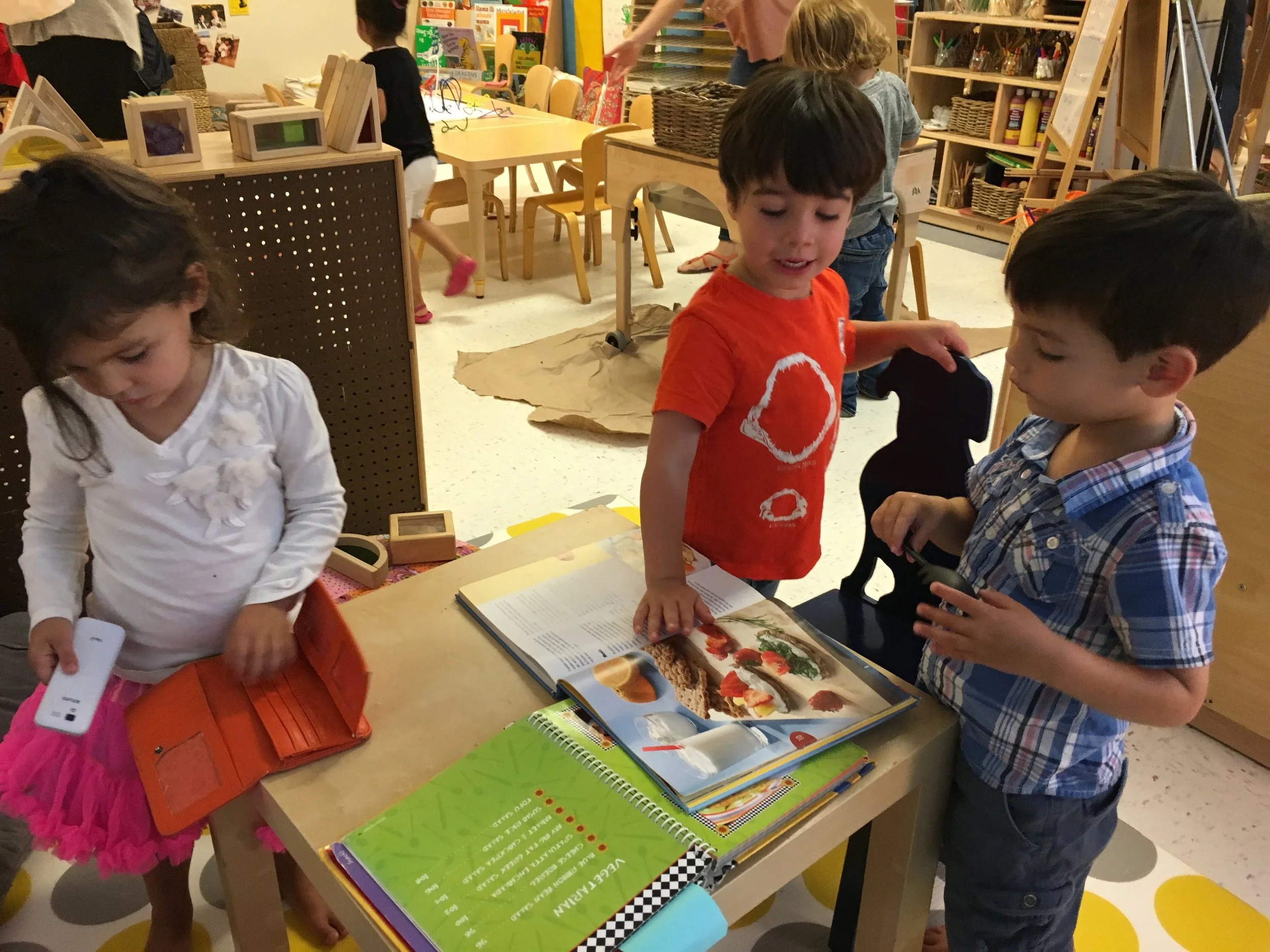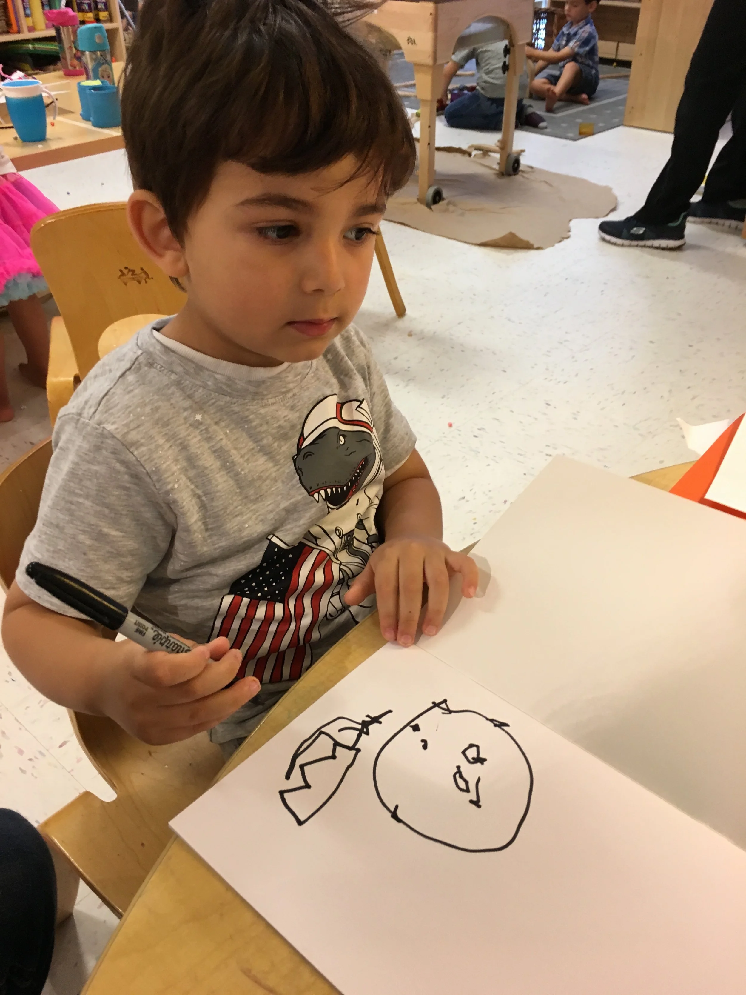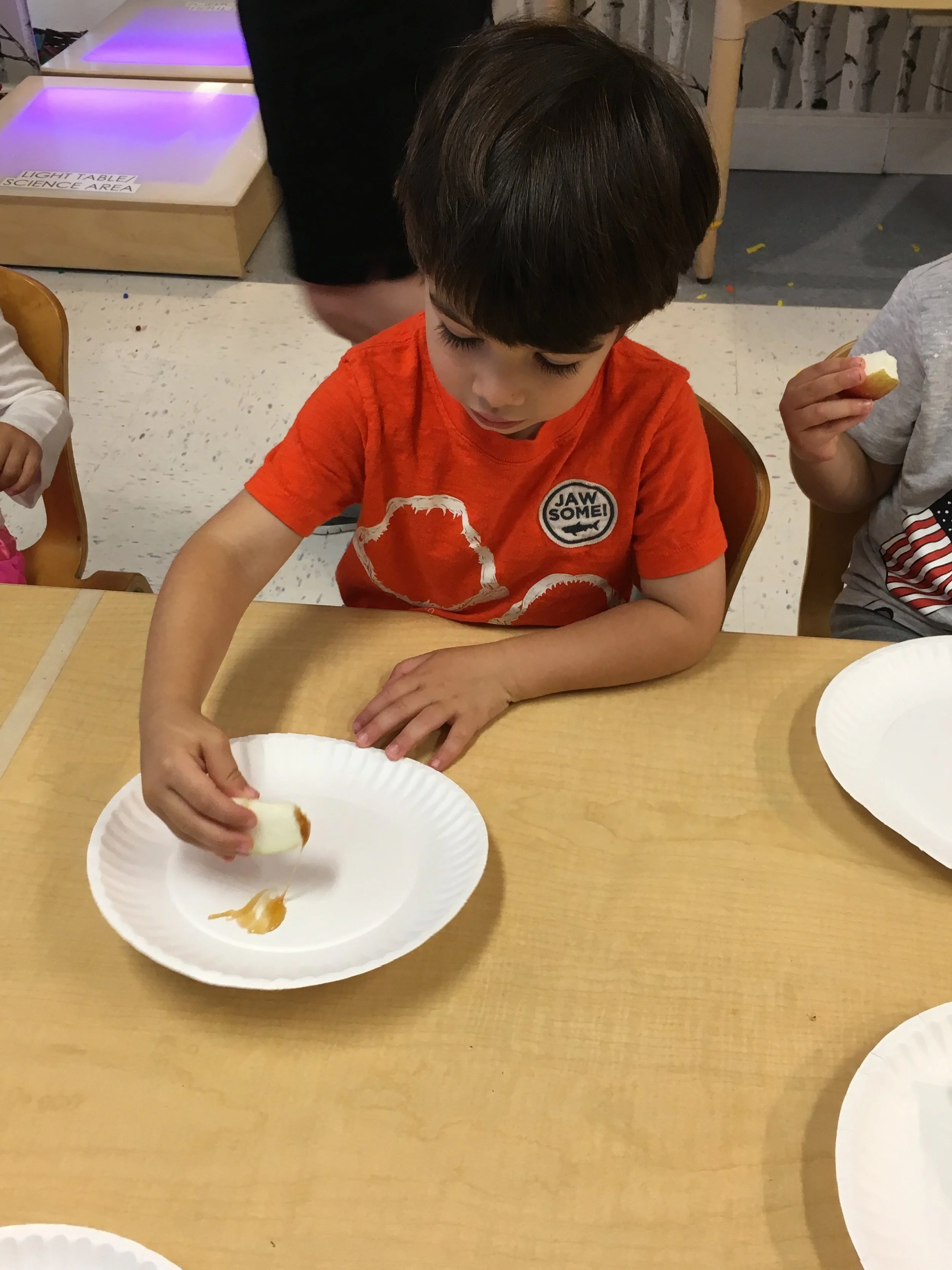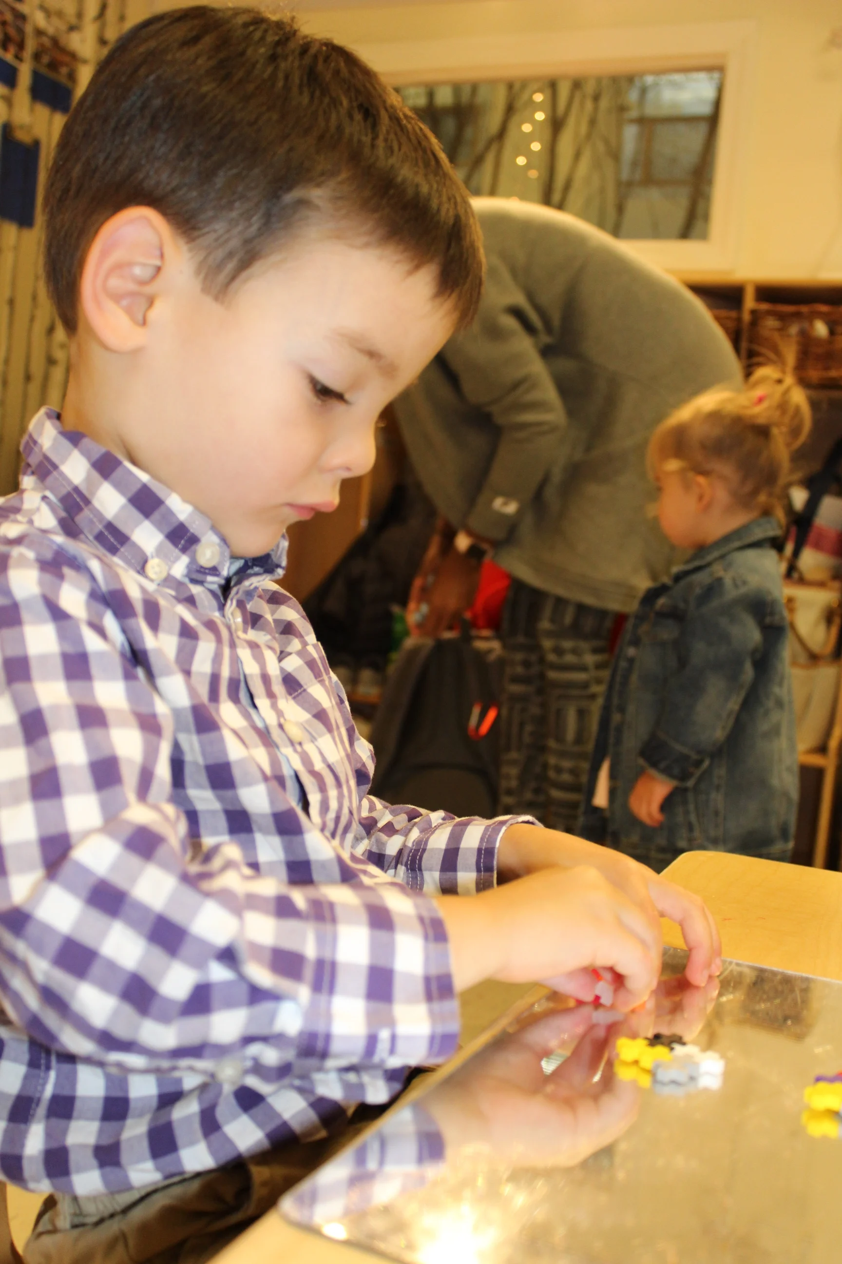 Recently, during open choice time Graydon invented a game. It all started with him hiding kitchen food under his t-shirt and asking one of his teachers to guess what he hid. Soon his friends started to join the game. Graydon would help them guess by providing hints. It seemed that the children were really involved and engaged in this game taking turns and establishing rules. As soon as Kian got involved he modified this game by bringing an oven mitt and placing an item inside of it (instead of under the t-shirt). Instantly he came up with a name for this game, “Guessing Glove.” It seemed that the inventor (Graydon) and participants agreed to that change as they started to use the glove.