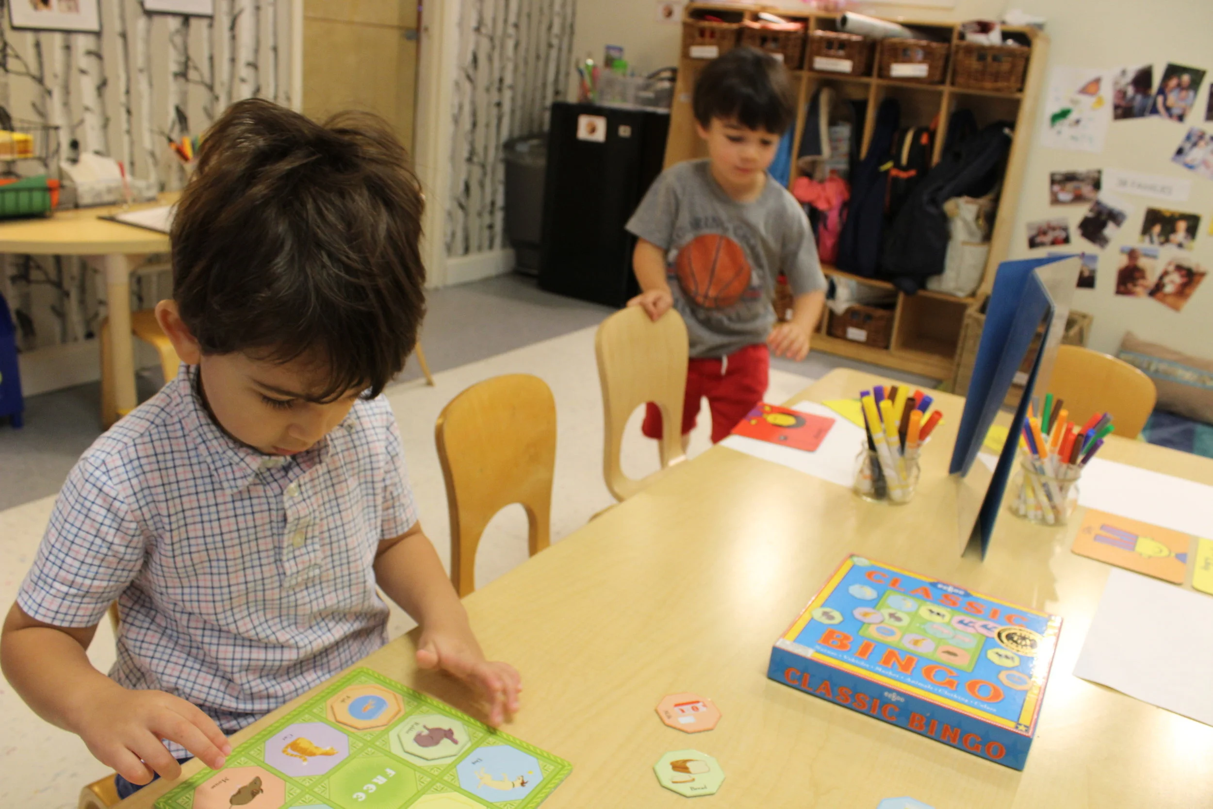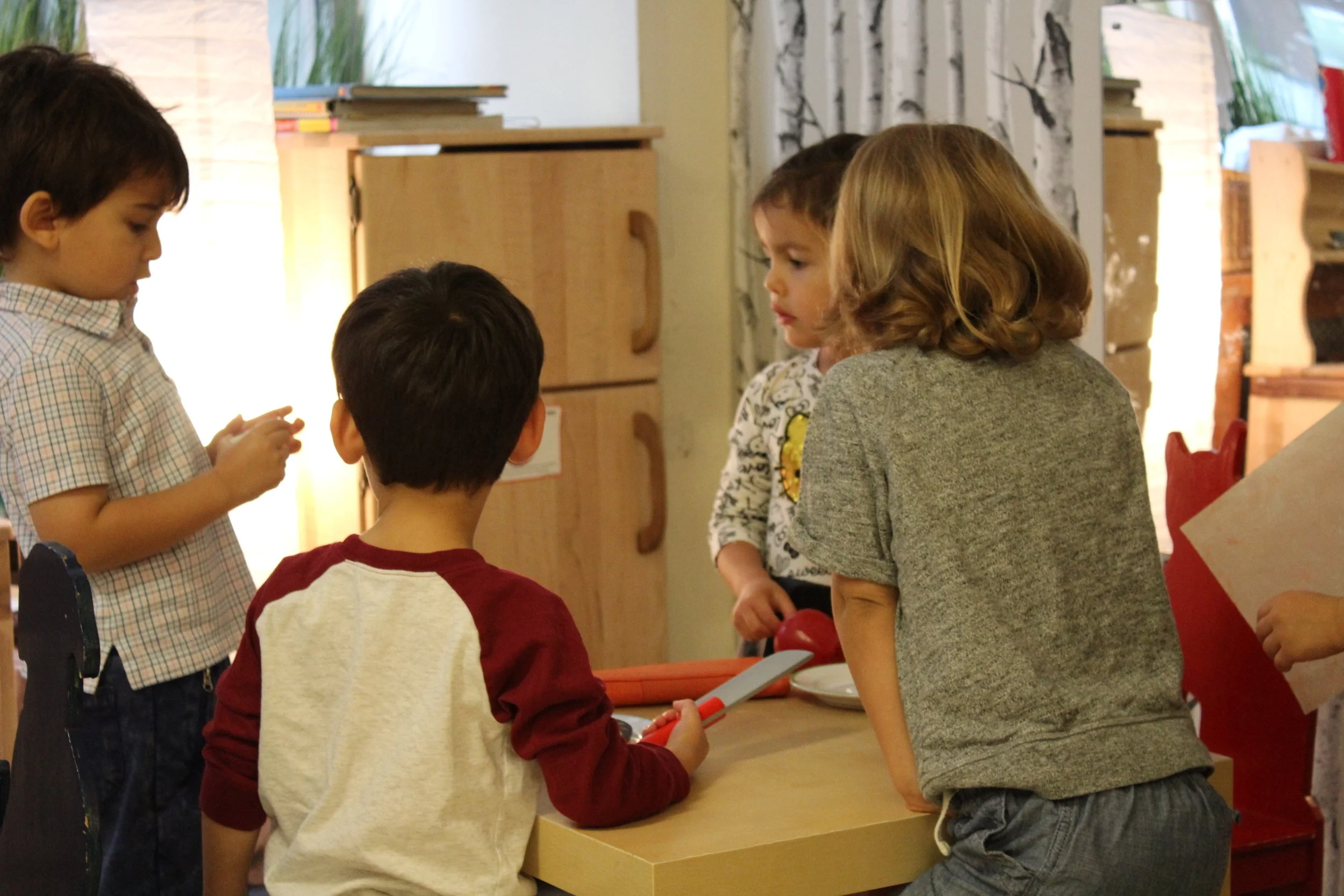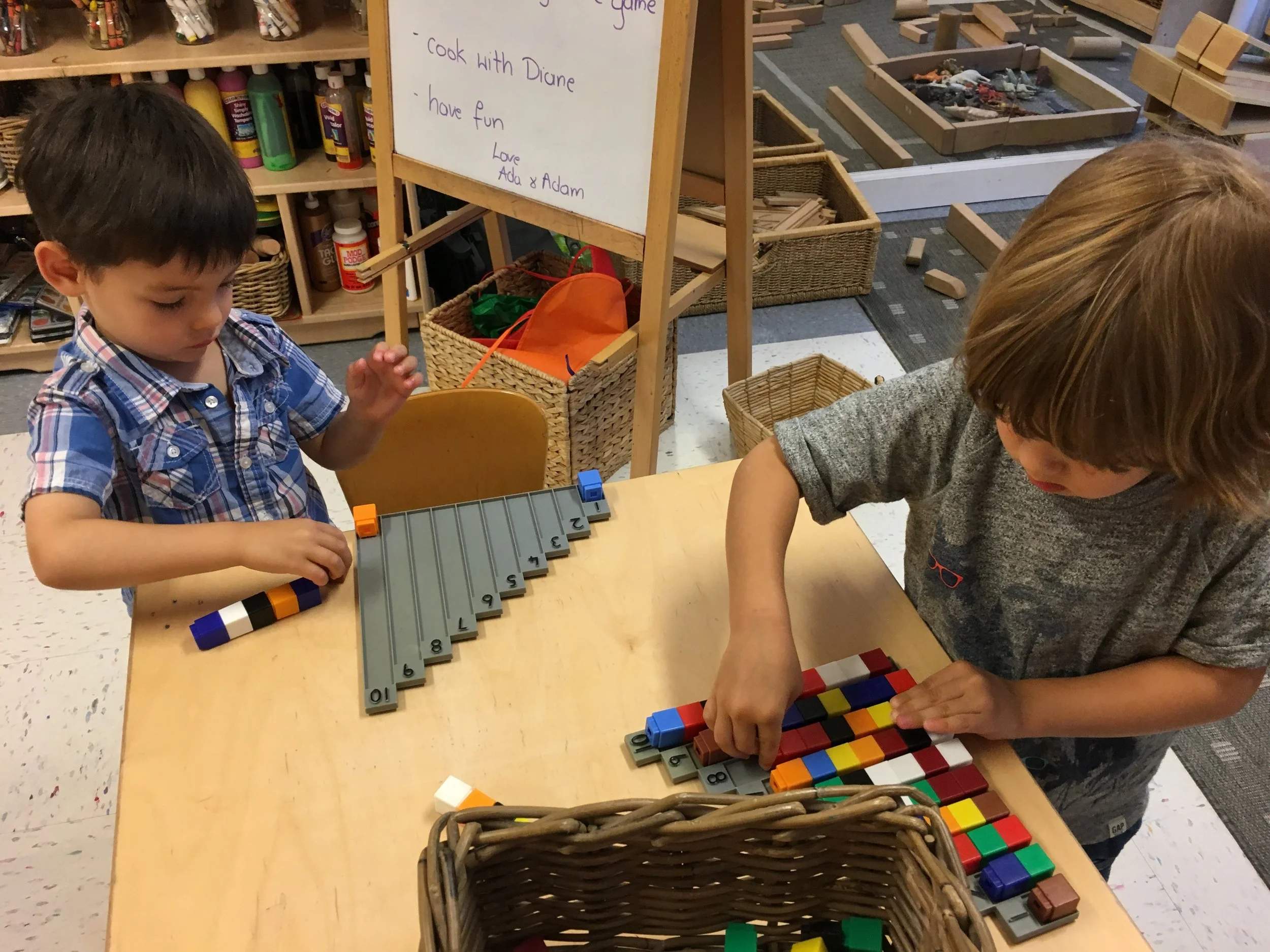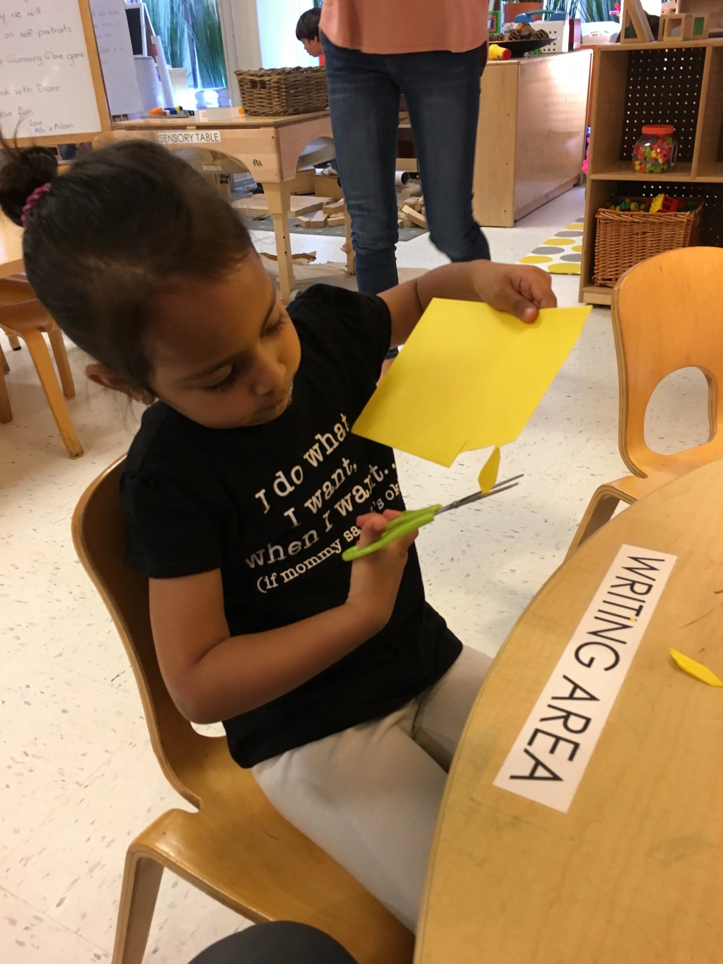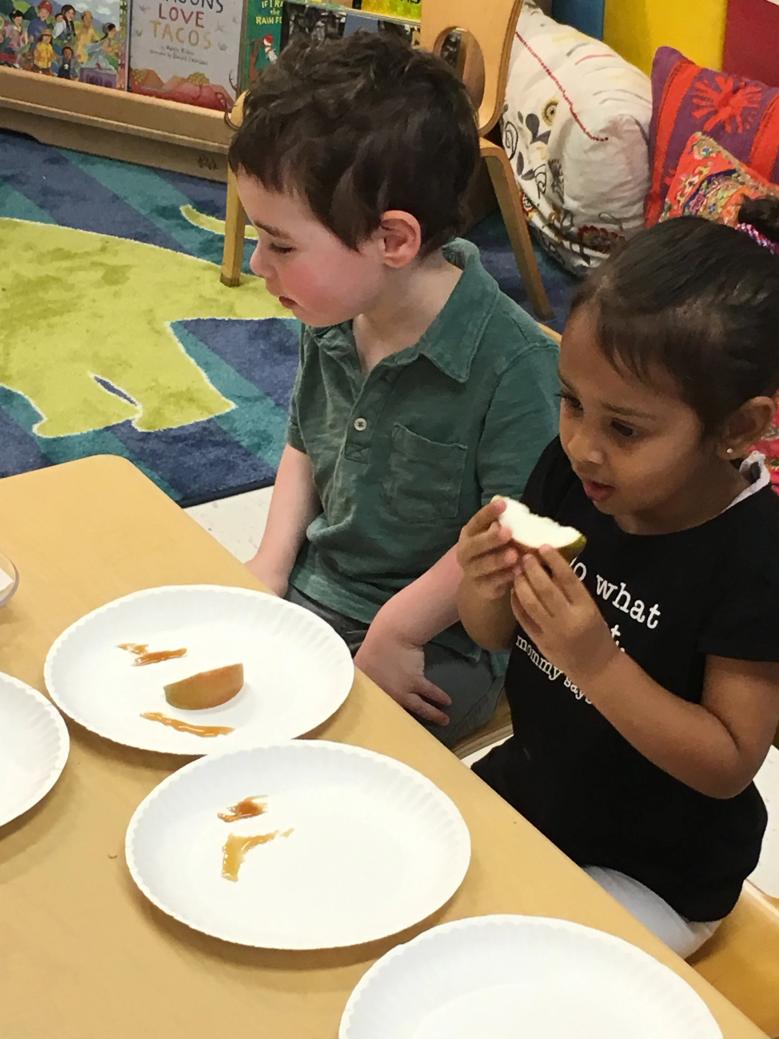 Recently, during open choice time Graydon invented a game. It all started with him hiding kitchen food under his t-shirt and asking one of his teachers to guess what he hid. Soon his friends started to join the game. Graydon would help them guess by providing hints. It seemed that the children were really involved and engaged in this game taking turns and establishing rules. As soon as Kian got involved he modified this game by bringing an oven mitt and placing an item inside of it (instead of under the t-shirt). Instantly he came up with a name for this game, “Guessing Glove.” It seemed that the inventor (Graydon) and participants agreed to that change as they started to use the glove.