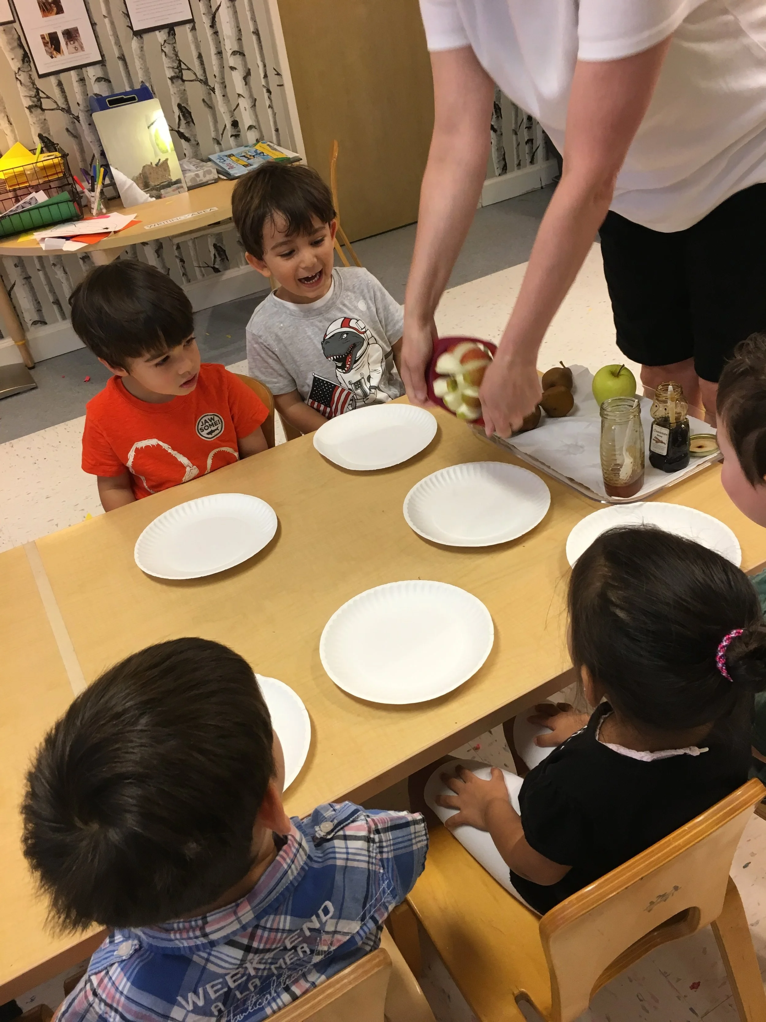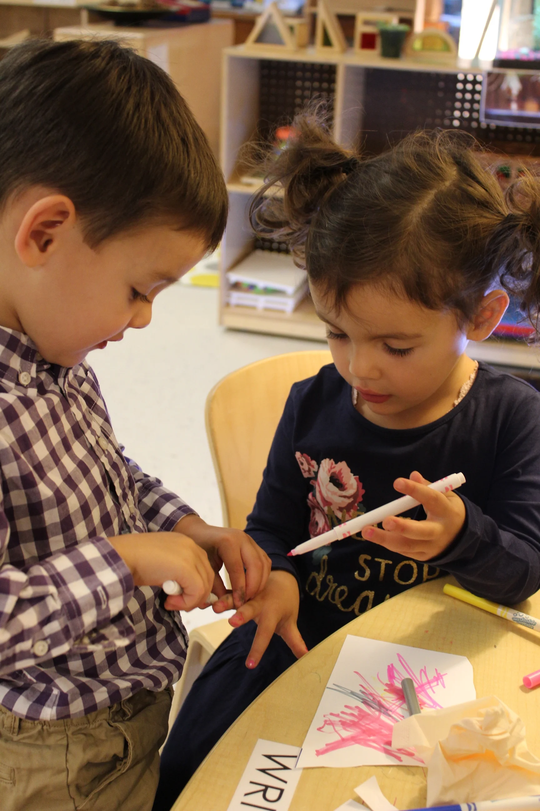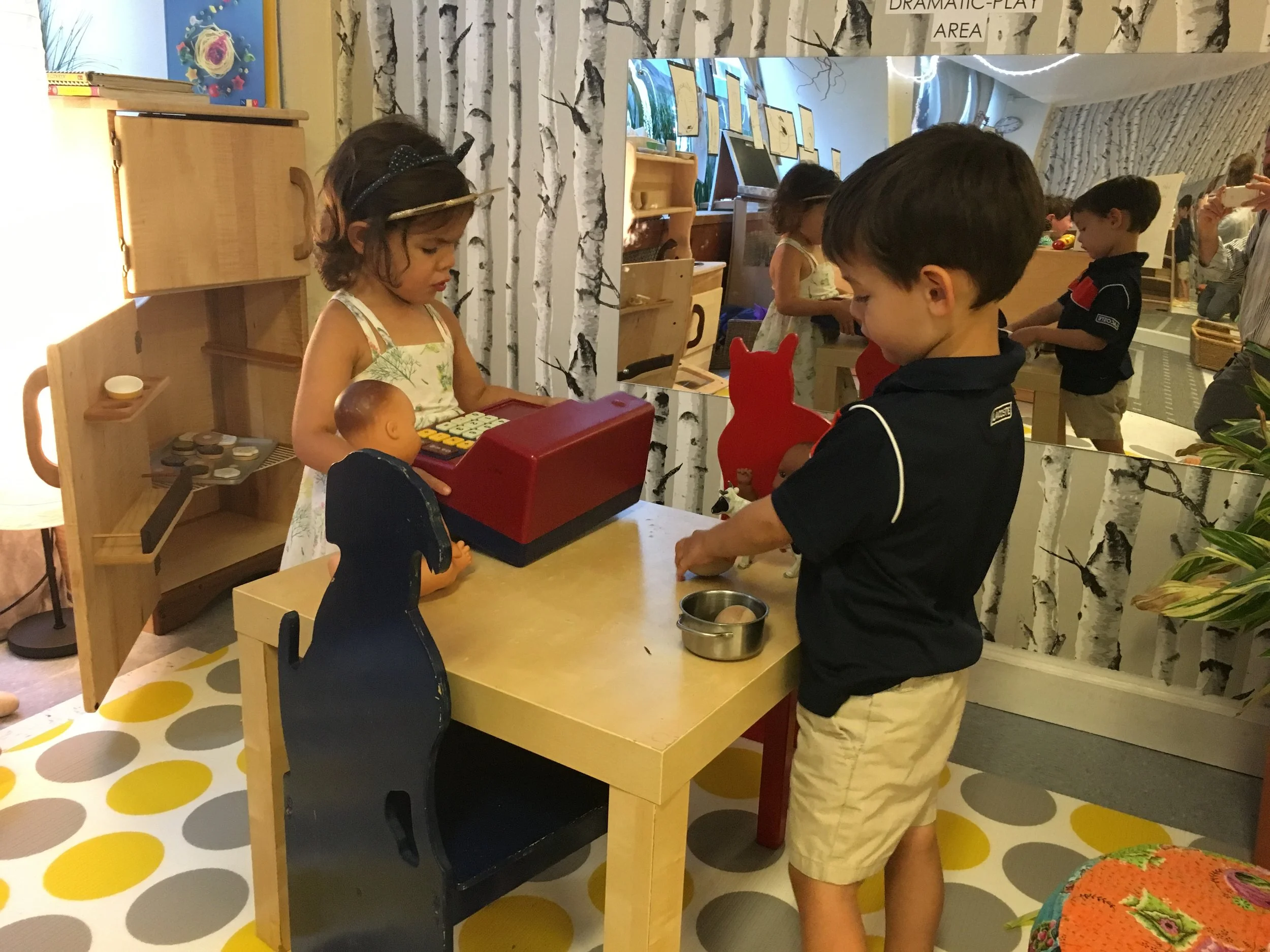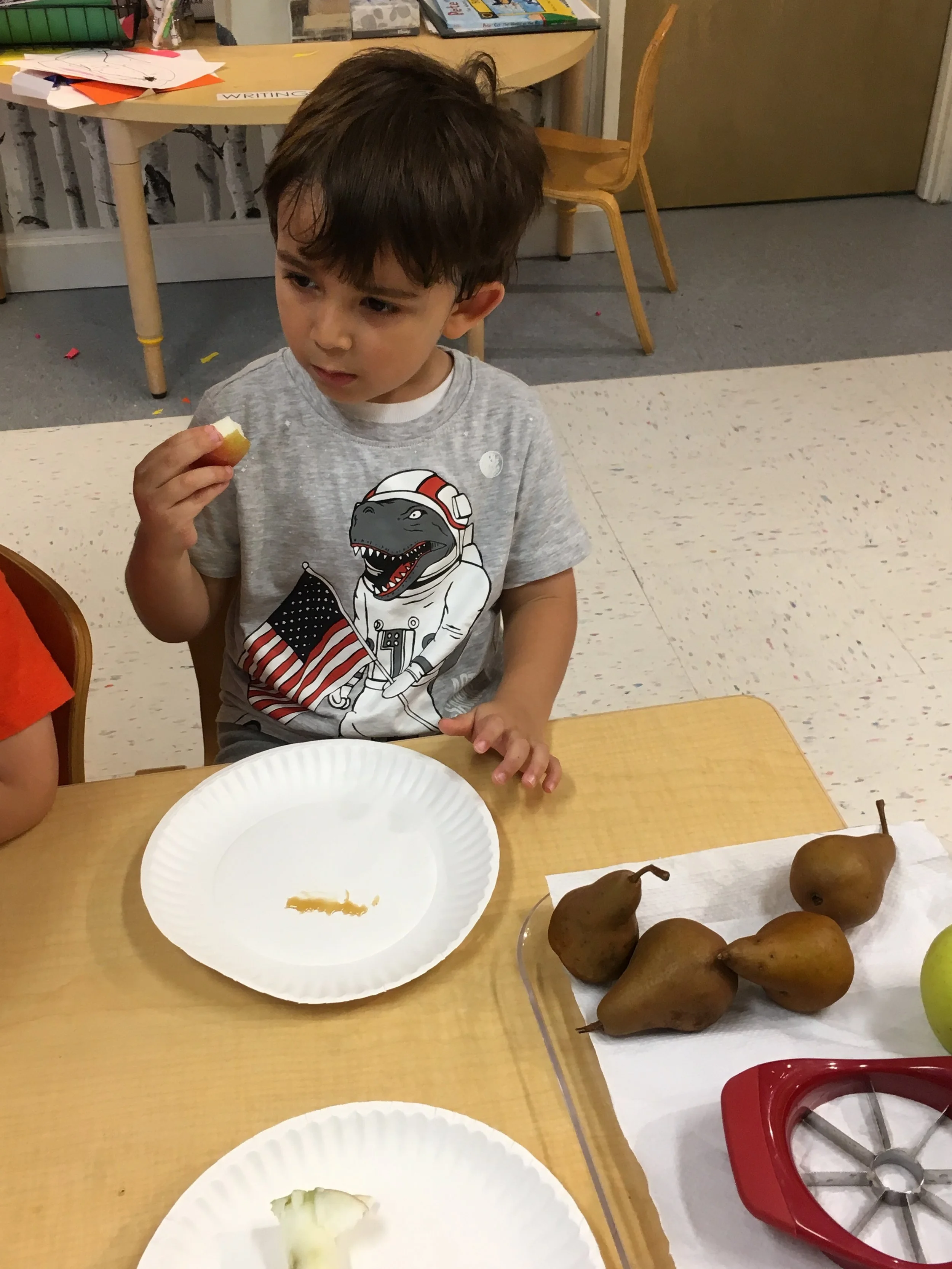 Recently, during open choice time Graydon invented a game. It all started with him hiding kitchen food under his t-shirt and asking one of his teachers to guess what he hid. Soon his friends started to join the game. Graydon would help them guess by providing hints. It seemed that the children were really involved and engaged in this game taking turns and establishing rules. As soon as Kian got involved he modified this game by bringing an oven mitt and placing an item inside of it (instead of under the t-shirt). Instantly he came up with a name for this game, “Guessing Glove.” It seemed that the inventor (Graydon) and participants agreed to that change as they started to use the glove.
