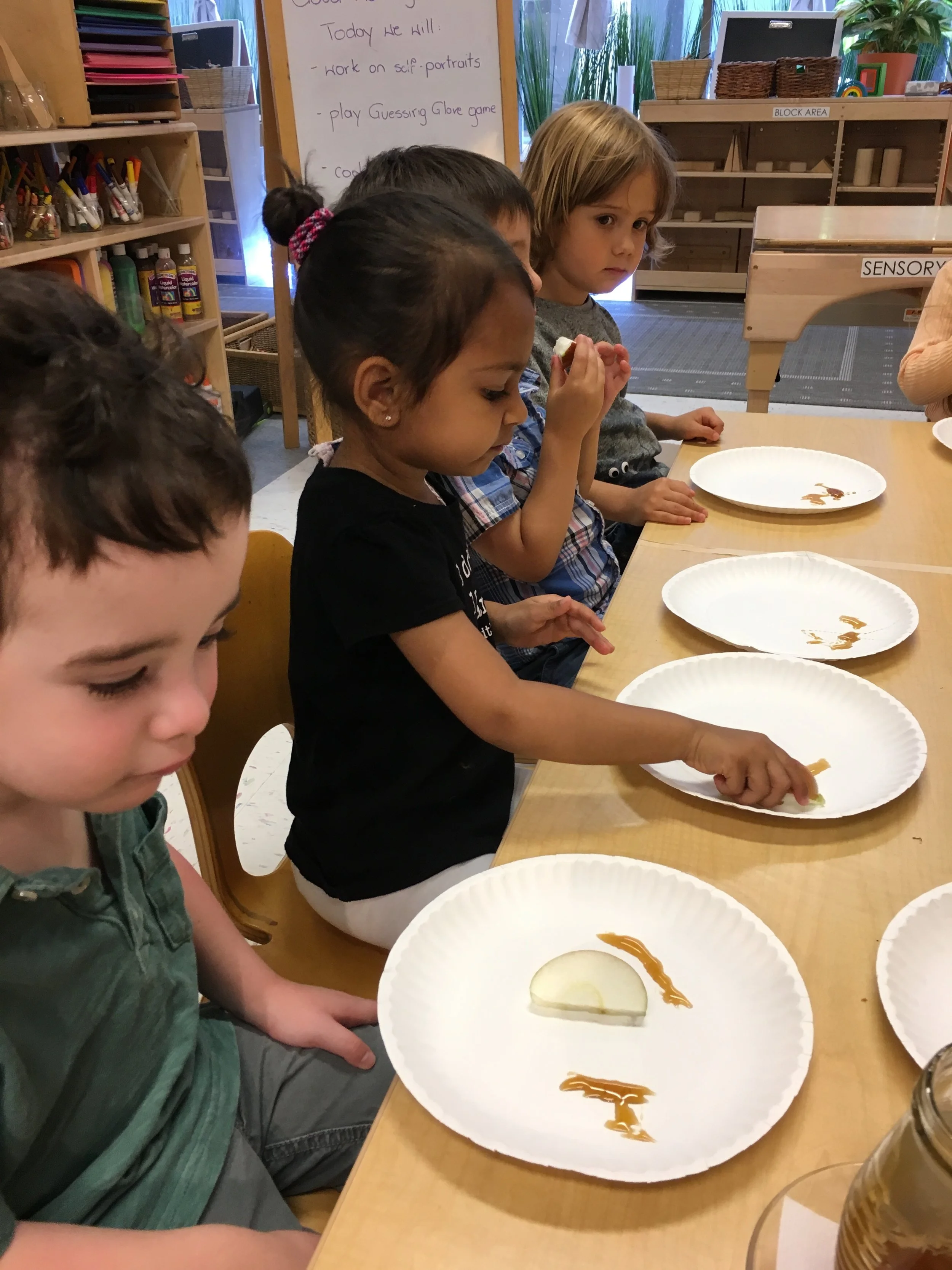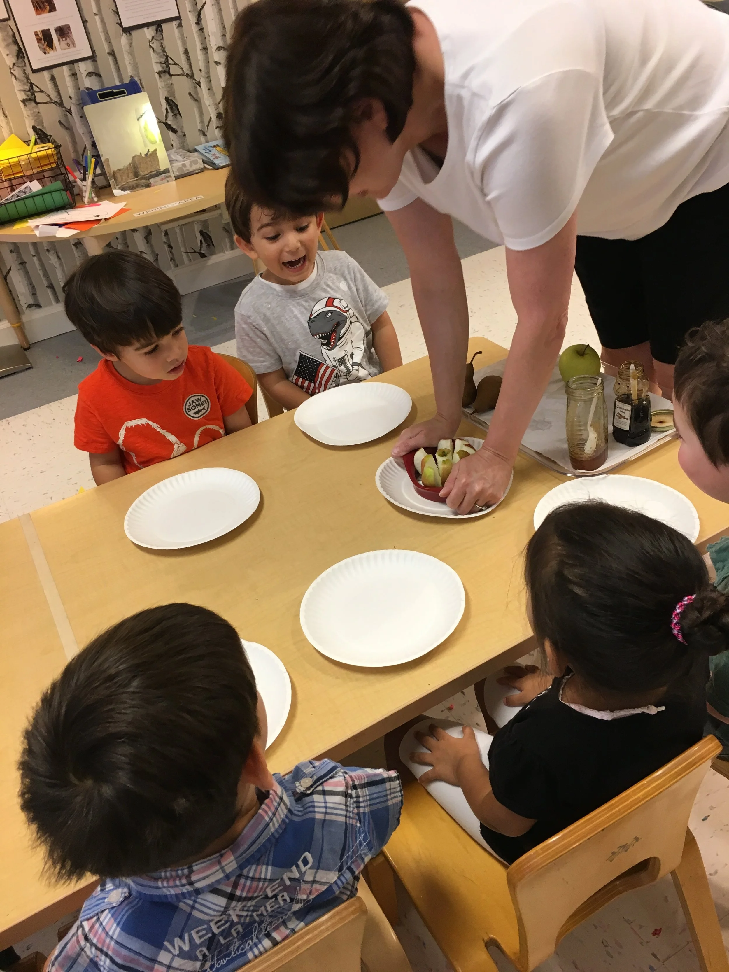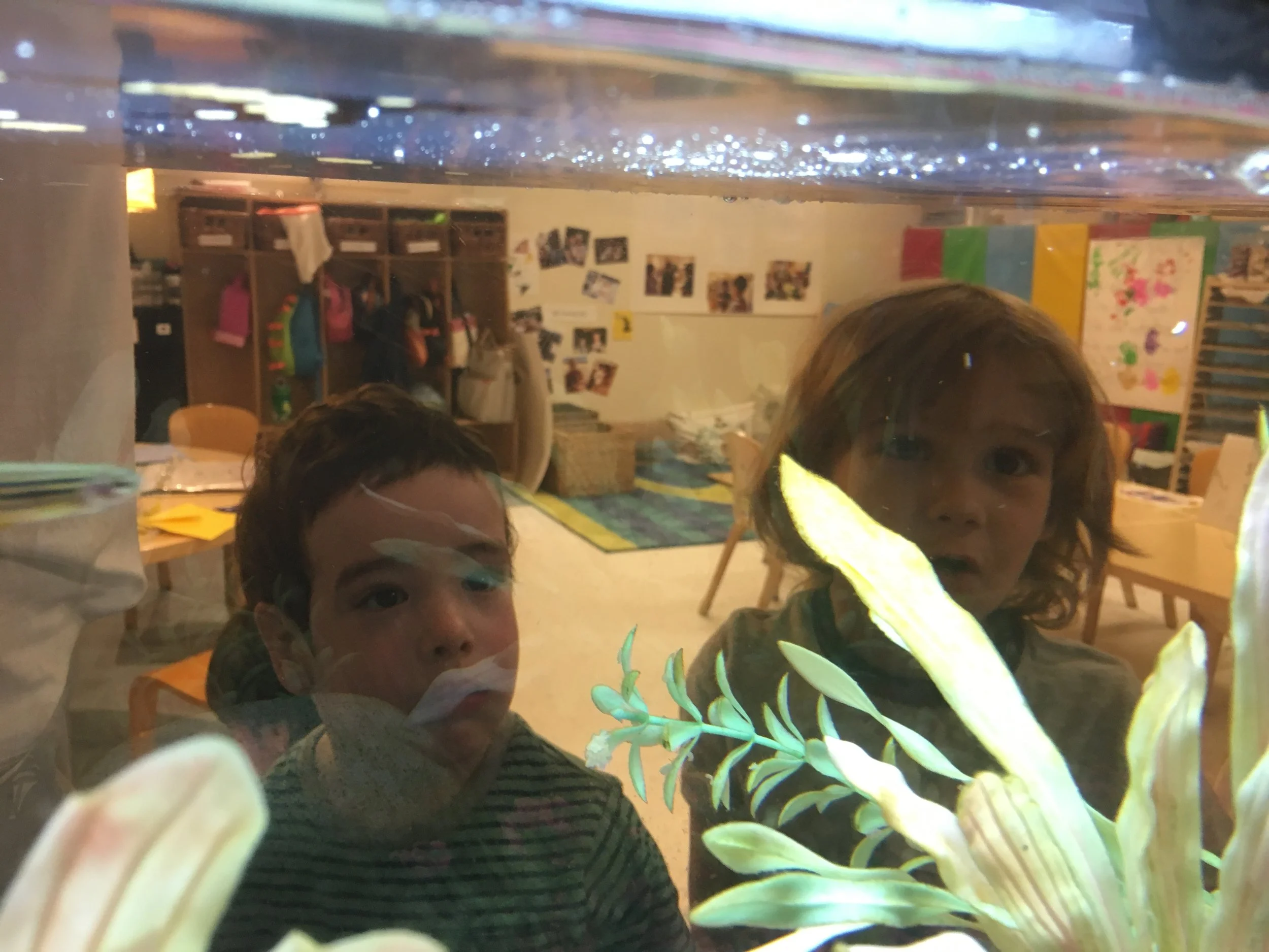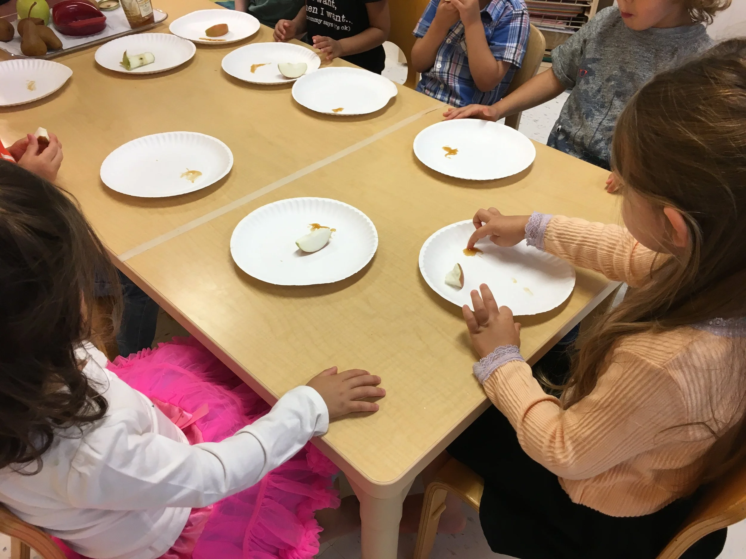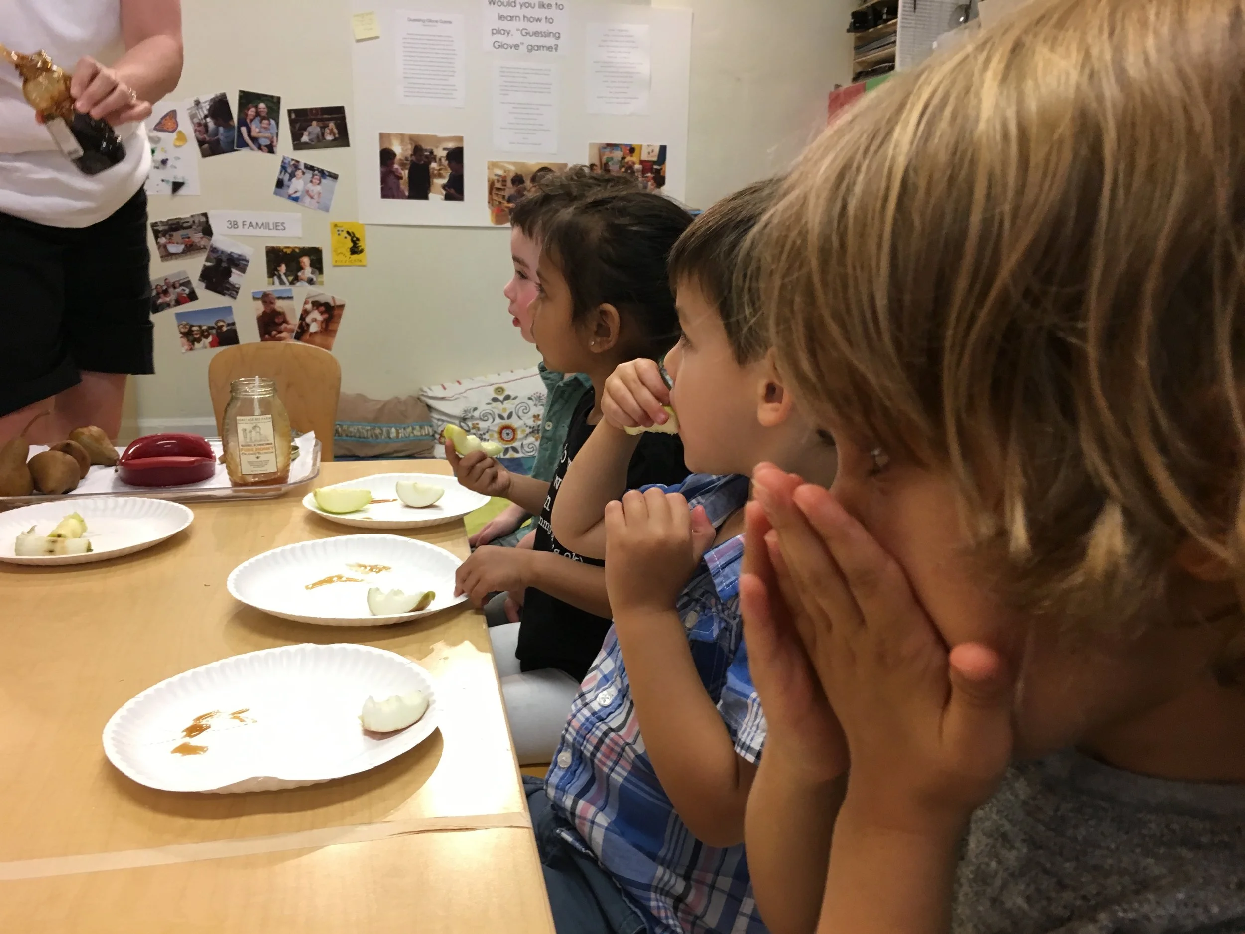 Recently, during open choice time Graydon invented a game. It all started with him hiding kitchen food under his t-shirt and asking one of his teachers to guess what he hid. Soon his friends started to join the game. Graydon would help them guess by providing hints. It seemed that the children were really involved and engaged in this game taking turns and establishing rules. As soon as Kian got involved he modified this game by bringing an oven mitt and placing an item inside of it (instead of under the t-shirt). Instantly he came up with a name for this game, “Guessing Glove.” It seemed that the inventor (Graydon) and participants agreed to that change as they started to use the glove.