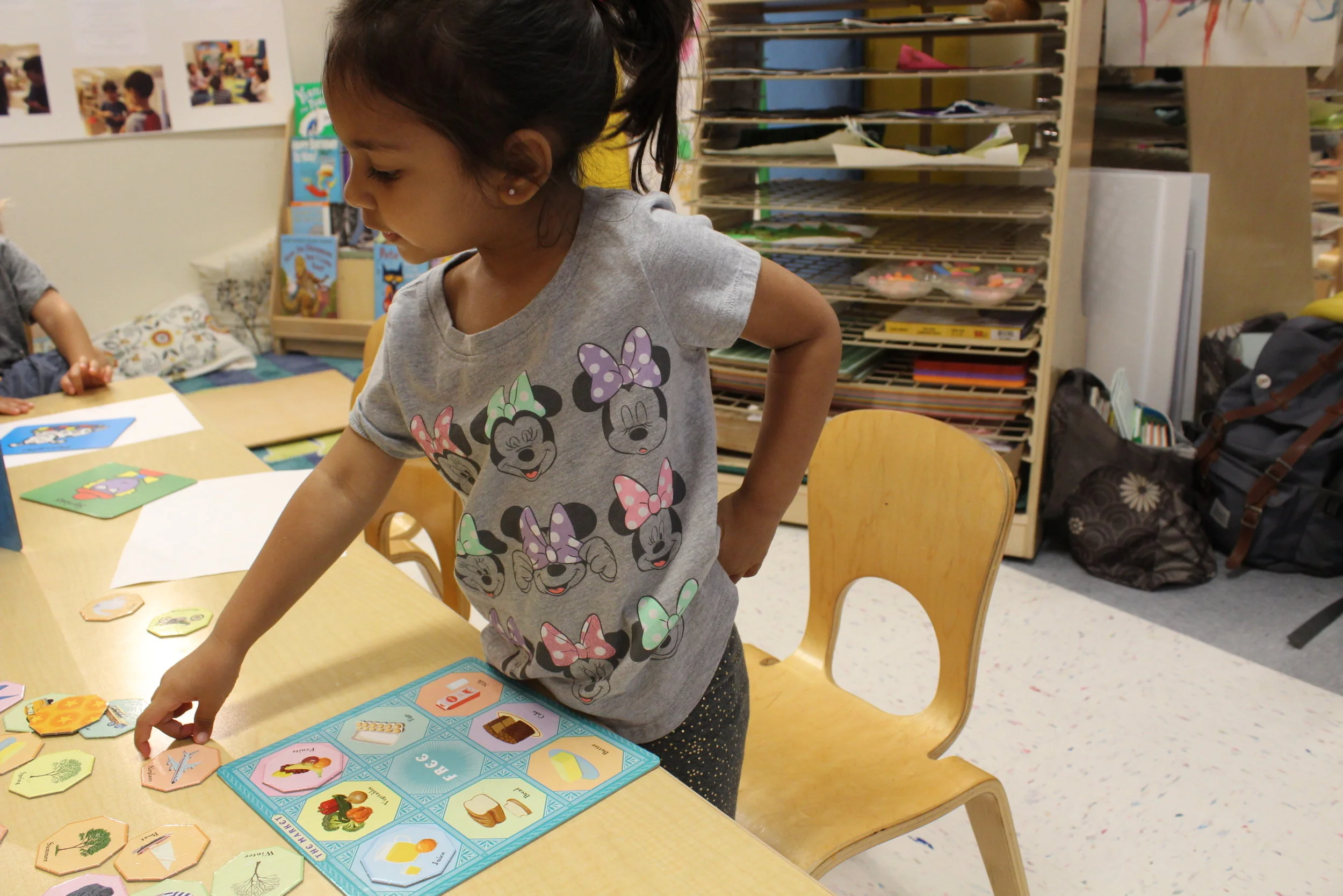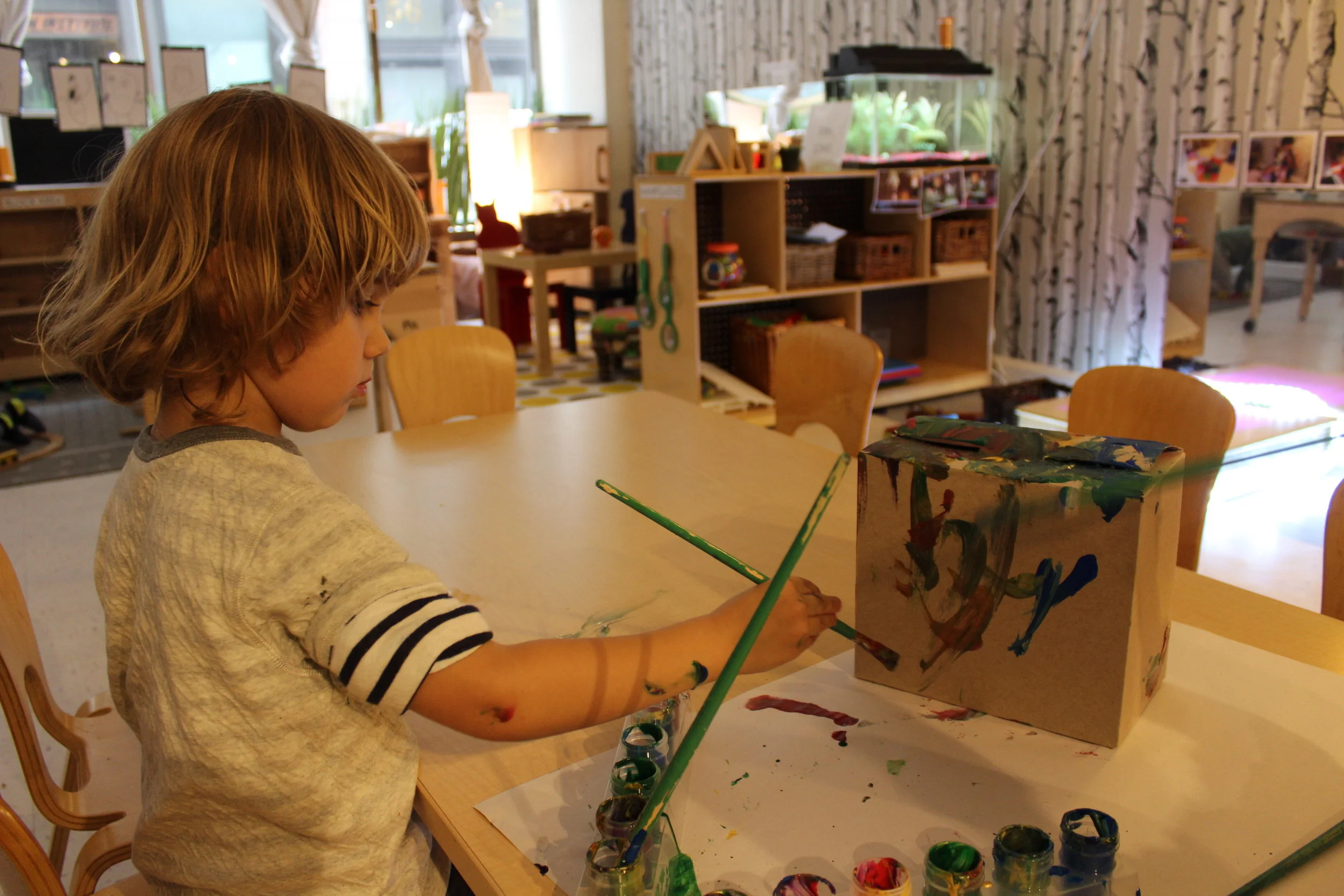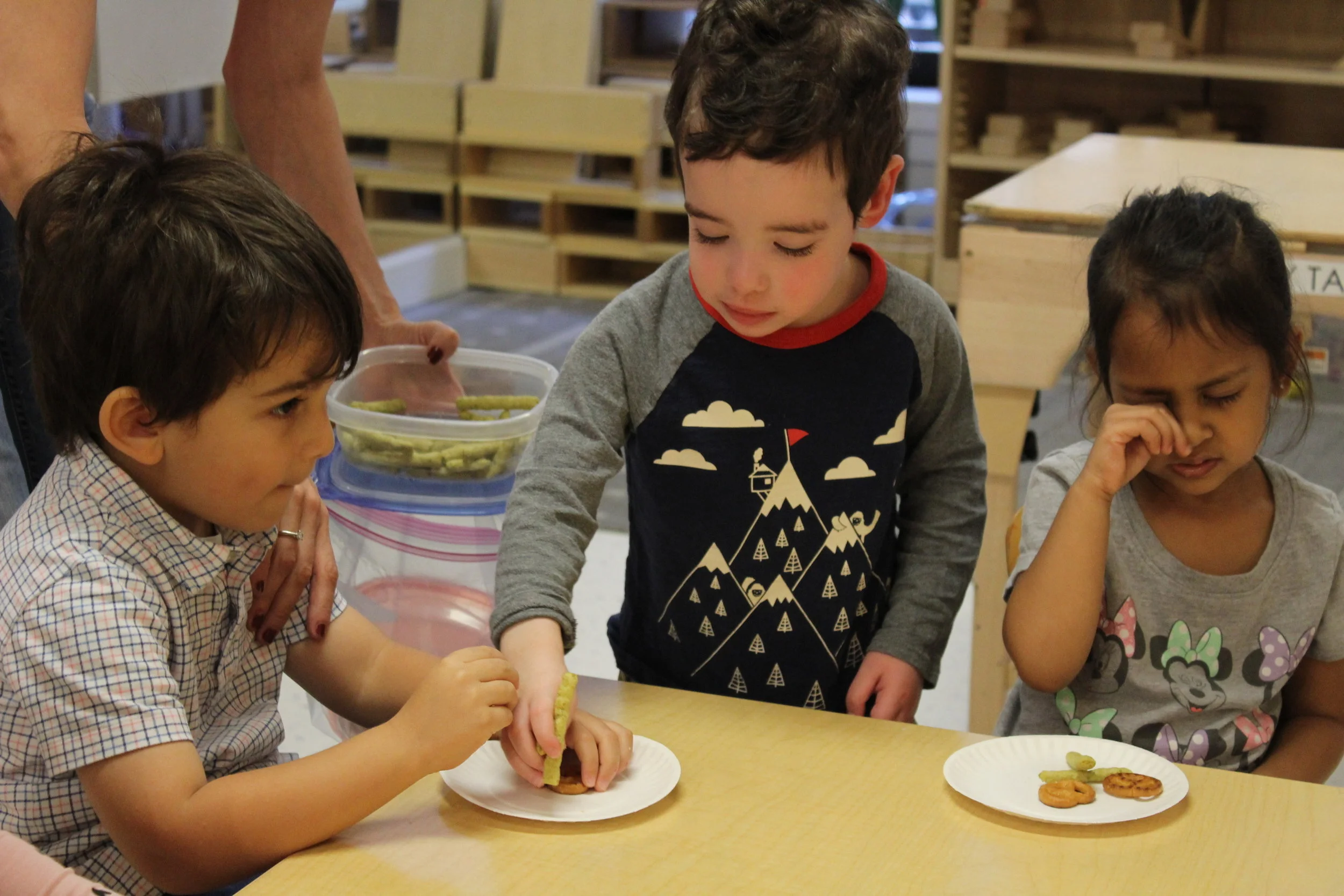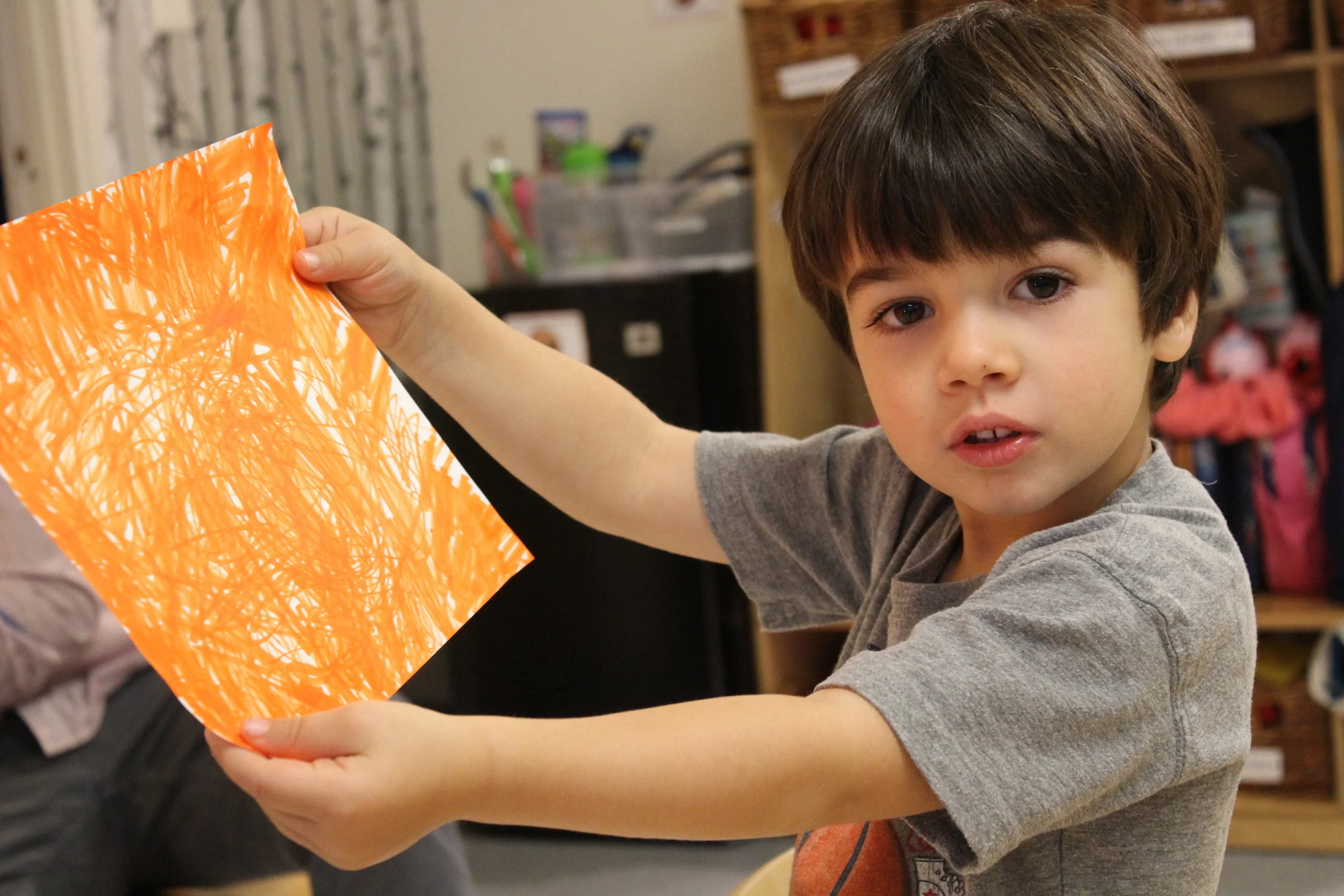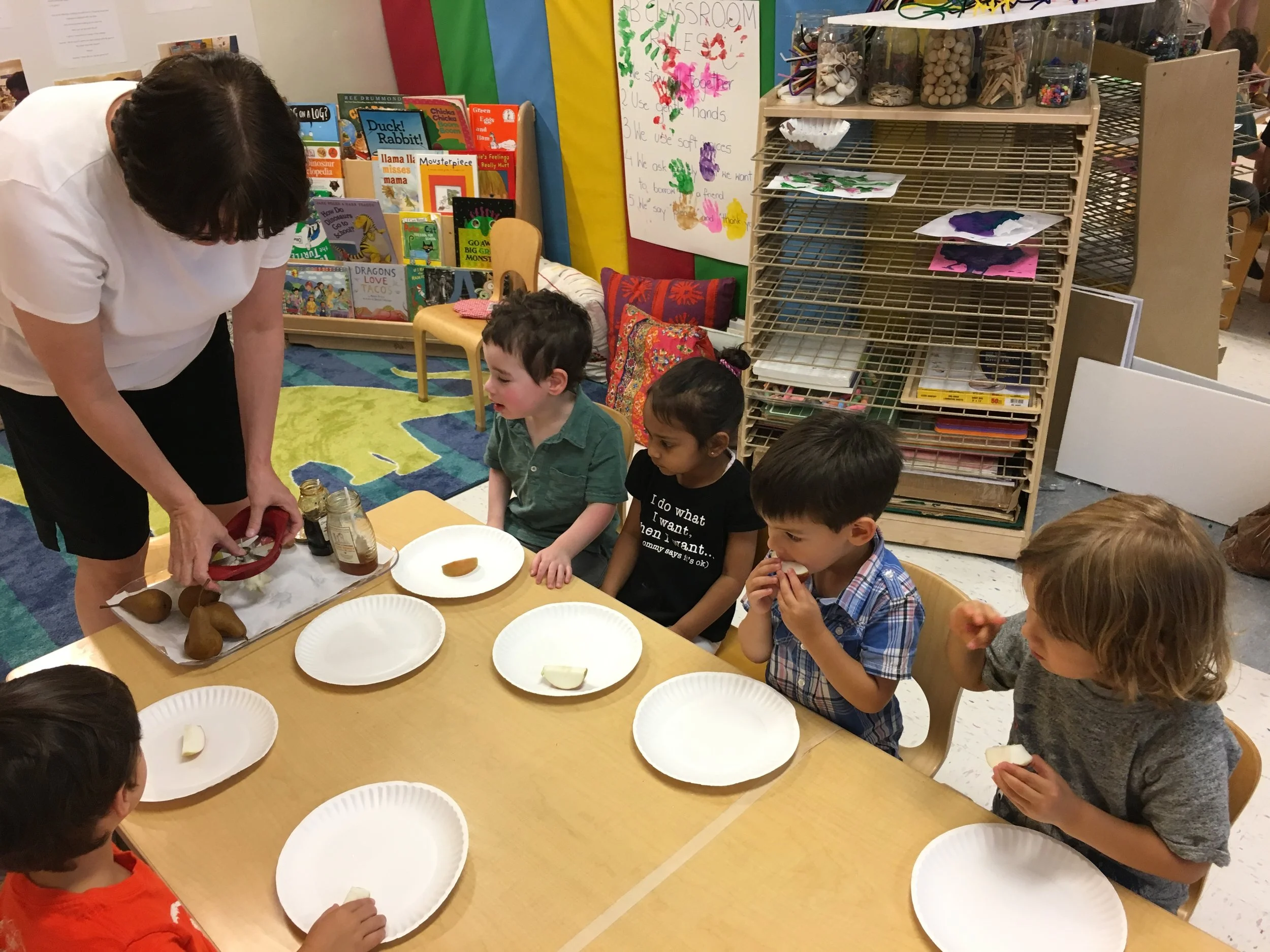 Recently, during open choice time Graydon invented a game. It all started with him hiding kitchen food under his t-shirt and asking one of his teachers to guess what he hid. Soon his friends started to join the game. Graydon would help them guess by providing hints. It seemed that the children were really involved and engaged in this game taking turns and establishing rules. As soon as Kian got involved he modified this game by bringing an oven mitt and placing an item inside of it (instead of under the t-shirt). Instantly he came up with a name for this game, “Guessing Glove.” It seemed that the inventor (Graydon) and participants agreed to that change as they started to use the glove.