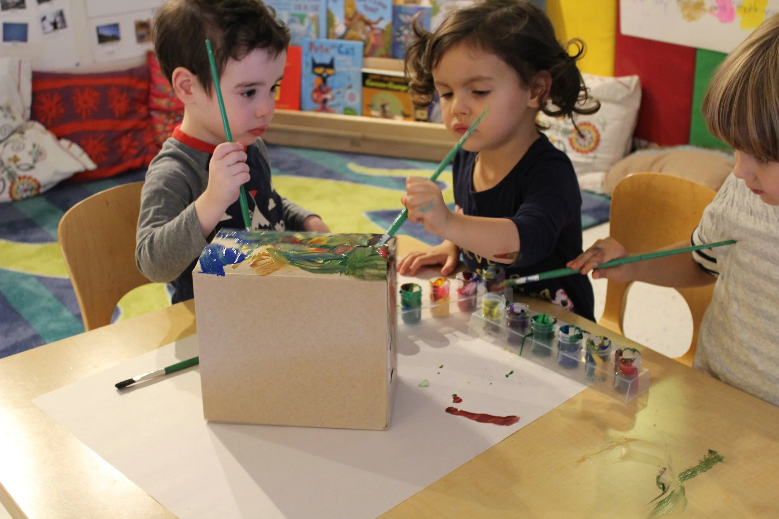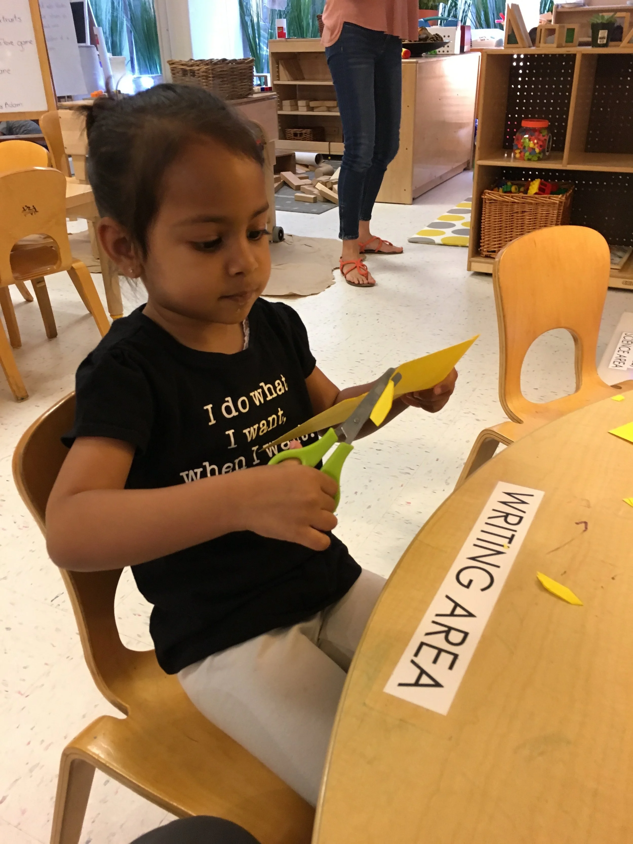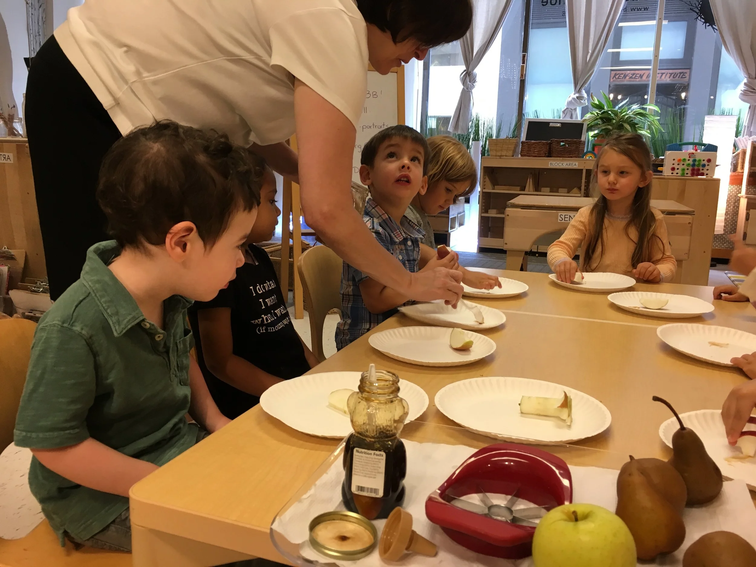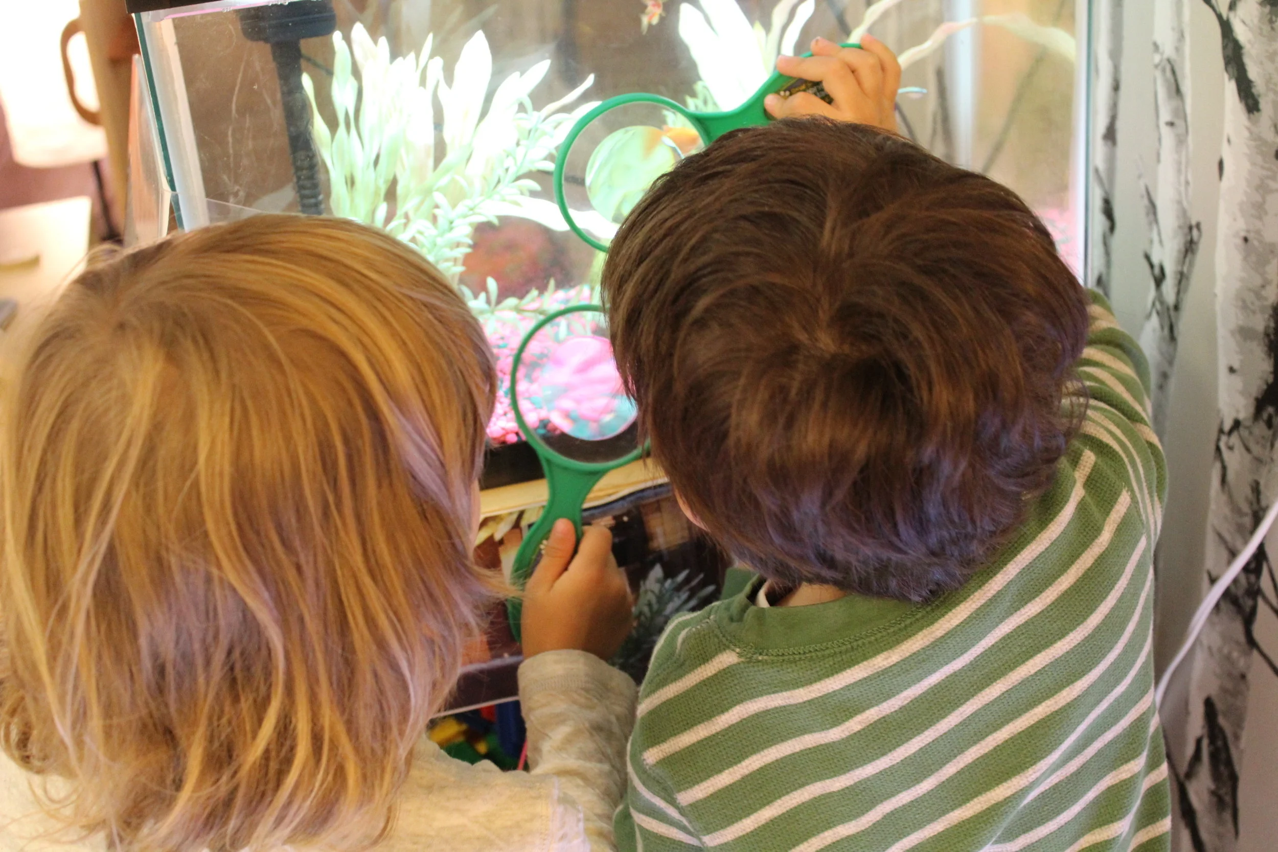 Recently, during open choice time Graydon invented a game. It all started with him hiding kitchen food under his t-shirt and asking one of his teachers to guess what he hid. Soon his friends started to join the game. Graydon would help them guess by providing hints. It seemed that the children were really involved and engaged in this game taking turns and establishing rules. As soon as Kian got involved he modified this game by bringing an oven mitt and placing an item inside of it (instead of under the t-shirt). Instantly he came up with a name for this game, “Guessing Glove.” It seemed that the inventor (Graydon) and participants agreed to that change as they started to use the glove.