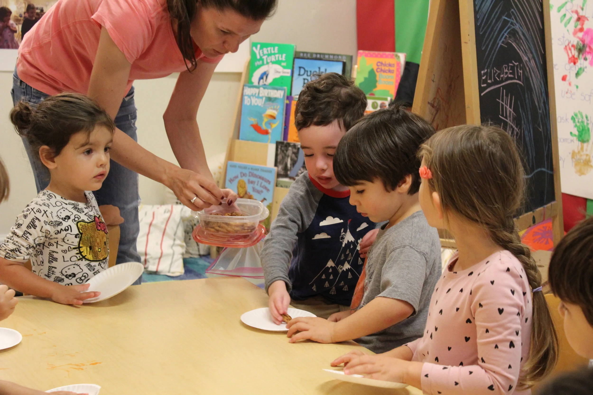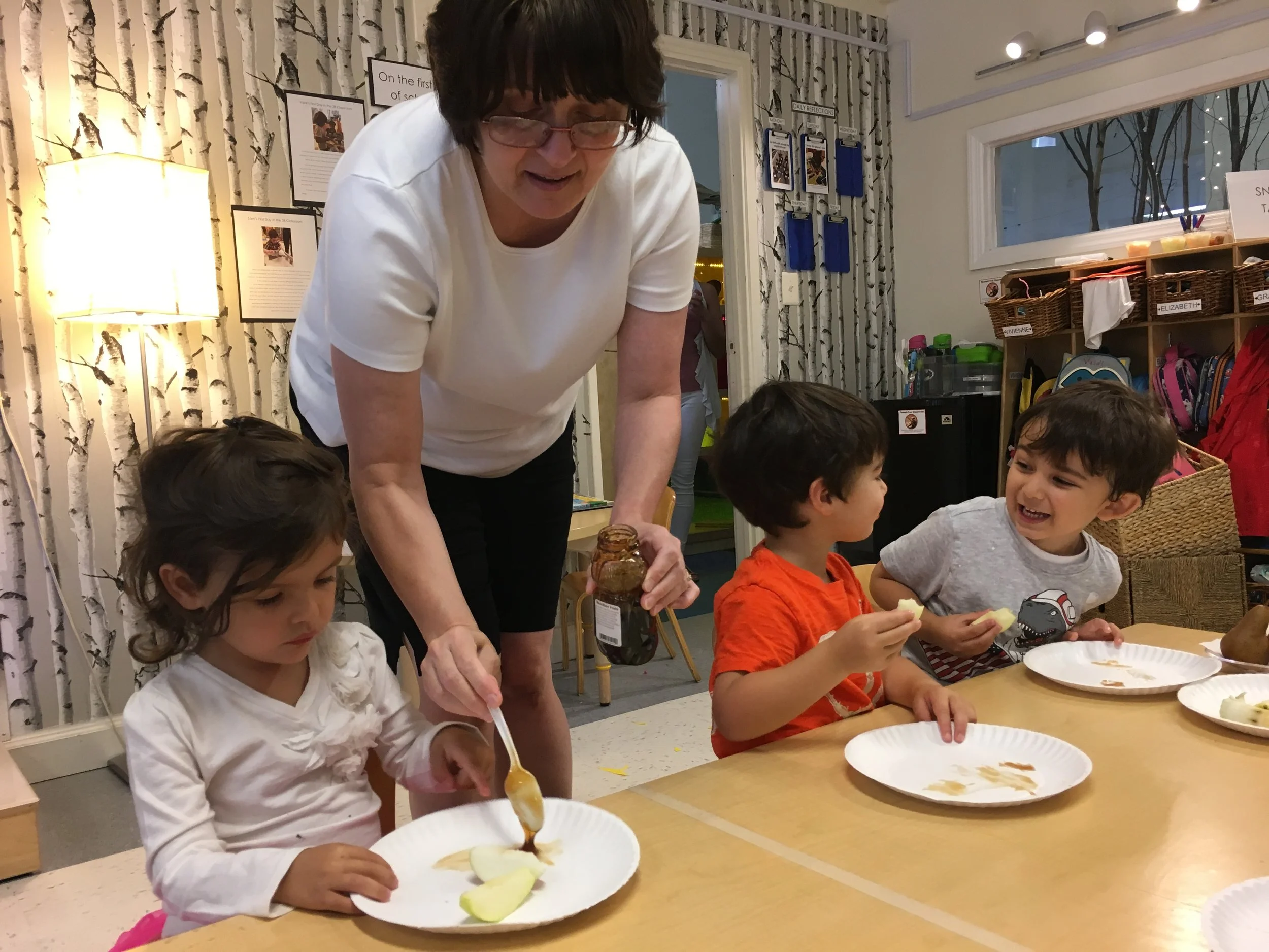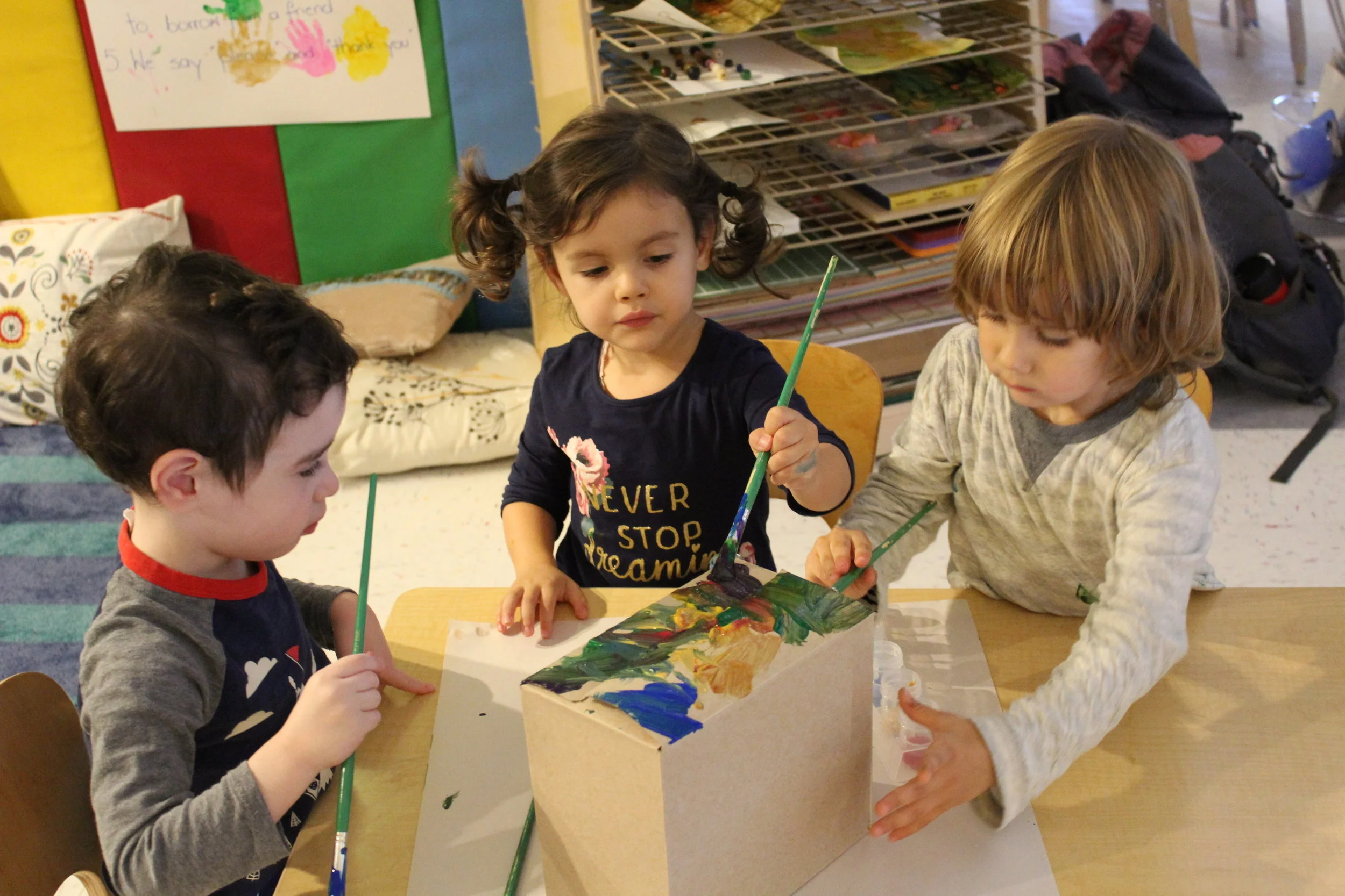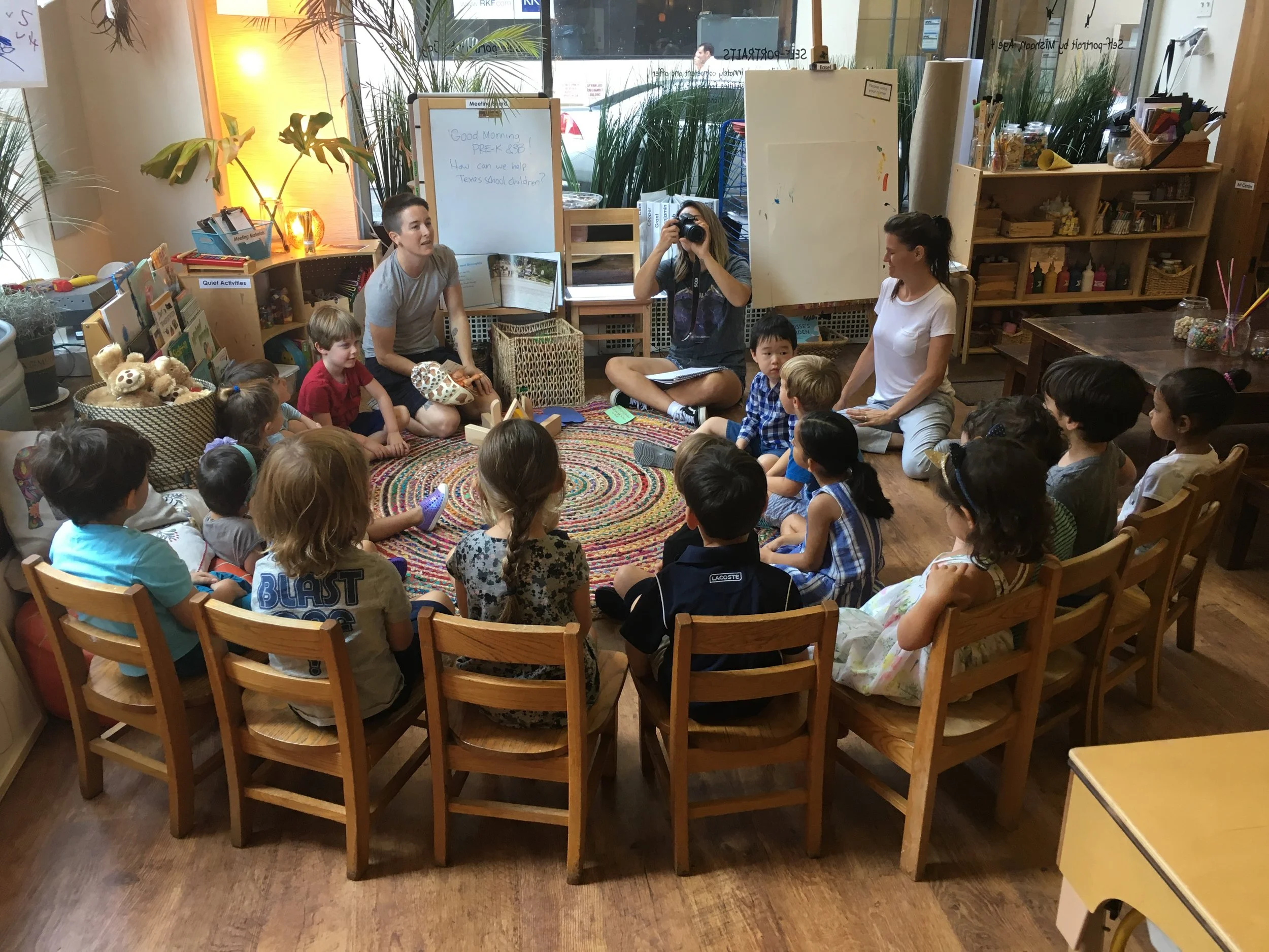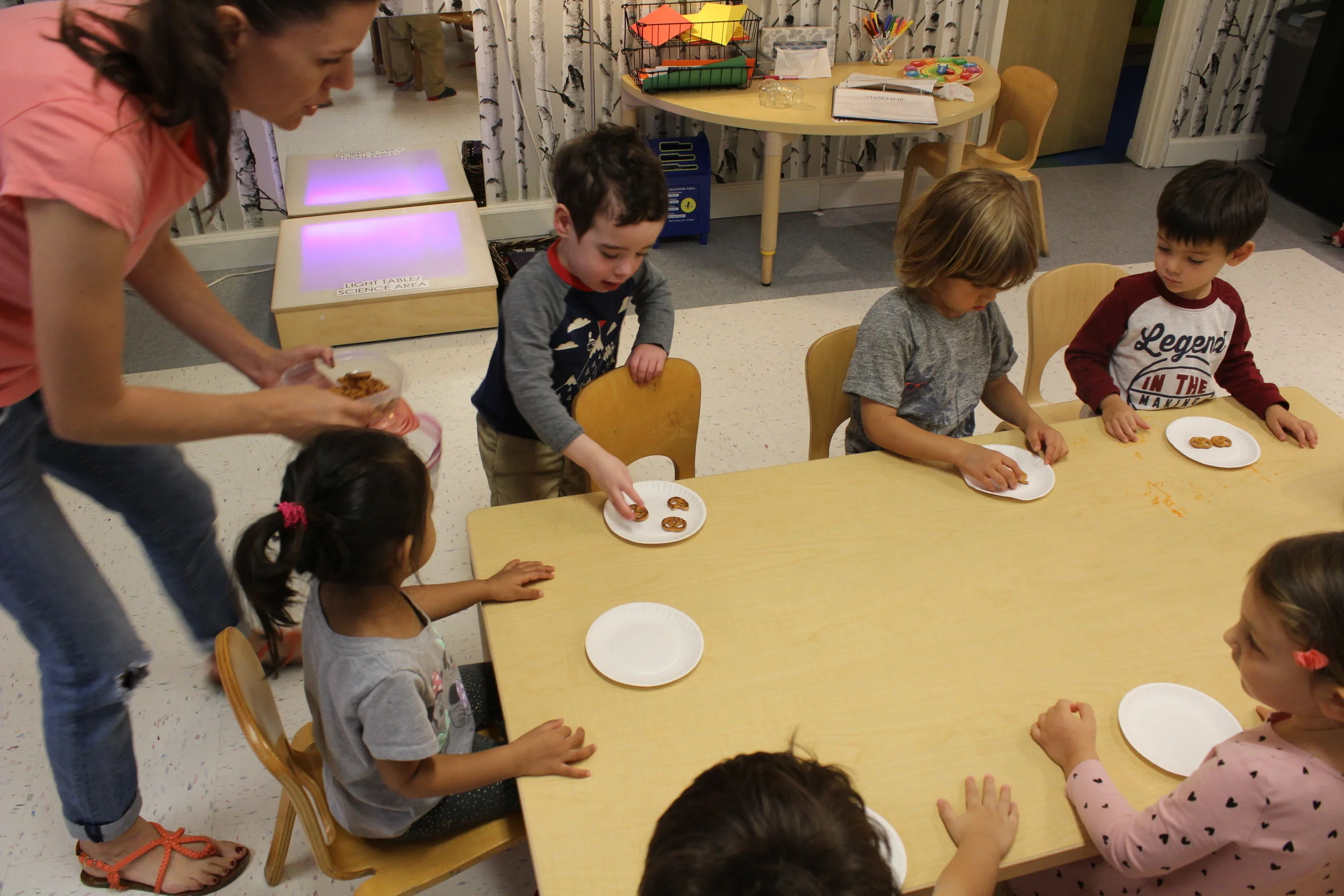 Recently, during open choice time Graydon invented a game. It all started with him hiding kitchen food under his t-shirt and asking one of his teachers to guess what he hid. Soon his friends started to join the game. Graydon would help them guess by providing hints. It seemed that the children were really involved and engaged in this game taking turns and establishing rules. As soon as Kian got involved he modified this game by bringing an oven mitt and placing an item inside of it (instead of under the t-shirt). Instantly he came up with a name for this game, “Guessing Glove.” It seemed that the inventor (Graydon) and participants agreed to that change as they started to use the glove.