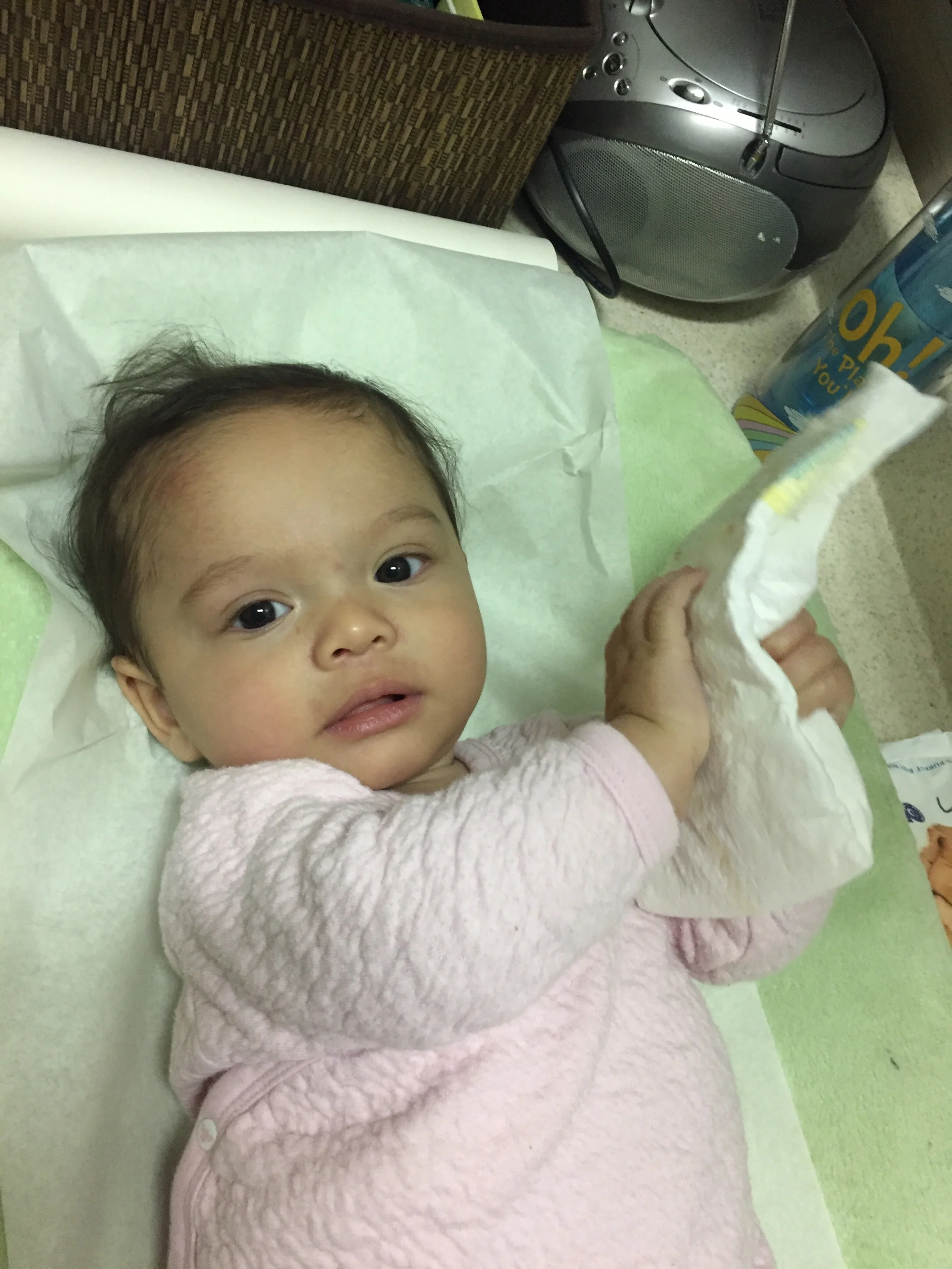 Monday- We took advantage of the good weather and went outside to the park. It was beautiful. Also it was Una's first day eating solids at school and she loves her solids. She likes to hold her own spoon while eating. We have been going to the gym too as much as we can so more social time and they can look and move around.