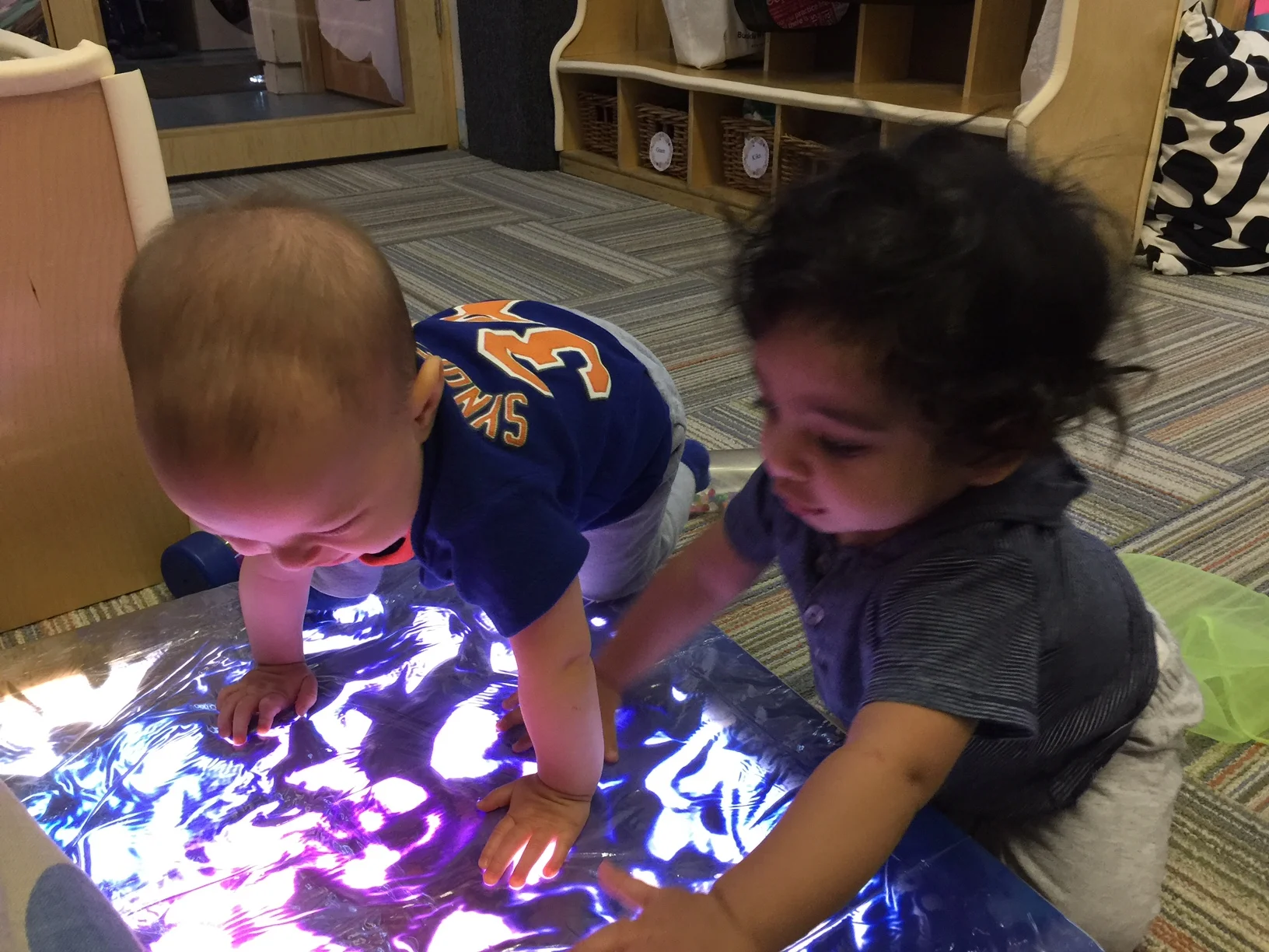 Leo and Rohan loved the texture of the warm, puddles of bright paint on the light table!