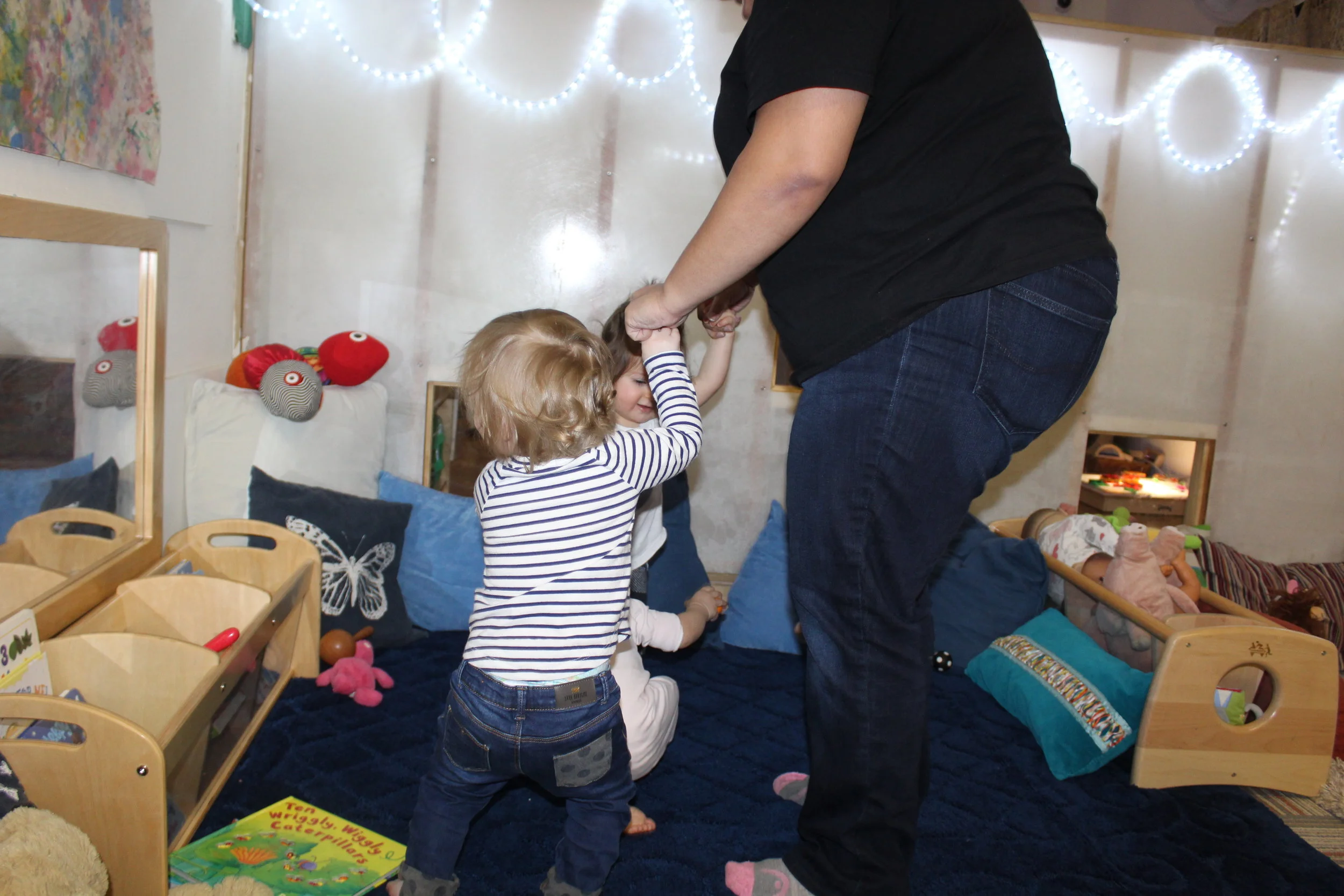 Circle Time also expands awareness of physical, sensory, and language experiences through exposure to new songs, dances, various materials, and other stimuli. Participating in the songs helps promote rhythm, coordination, counting, and dexterity as well as singing. Dancing helps with gross motor skills. (e.g., turning and jumping).